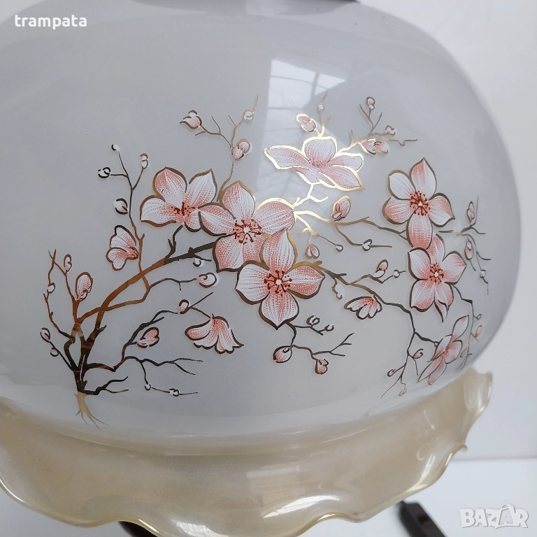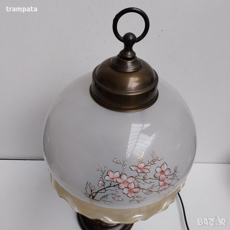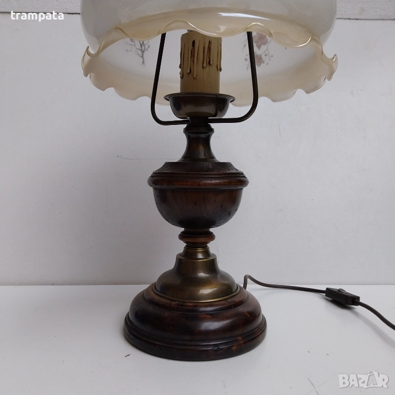 НАЙ ДОБРАТА ОФЕРТА Стара немска голяма настолна Лампа , дърво,Месиннг и стъкло.