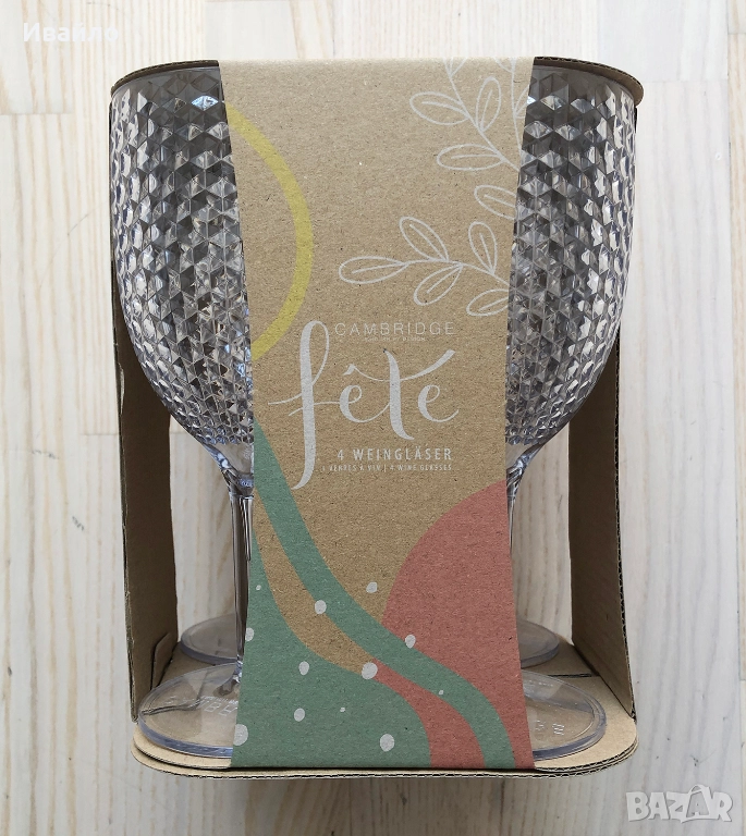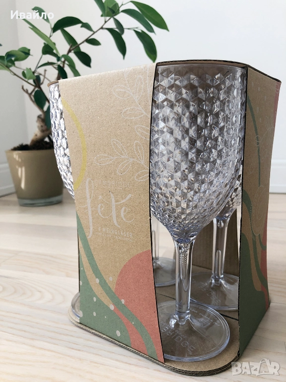 Елегантни универсални пластмасови чаши, имитация на стъкло - 4 бр. → Обява 52613939