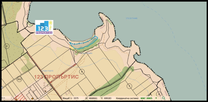 Имотът се намира до морския бряг, като между имота и морето има само природна скала -изключителна държавна собственост.