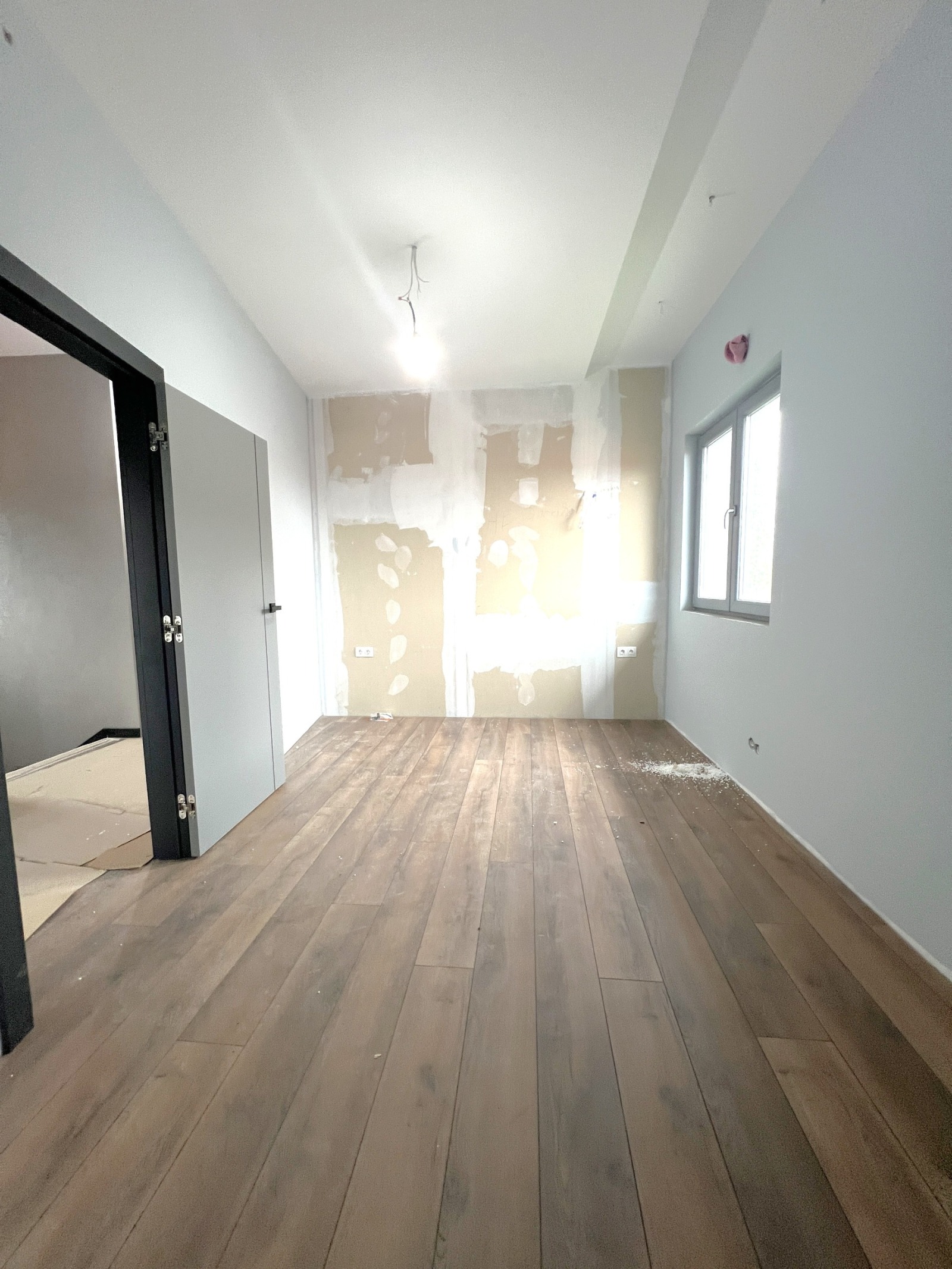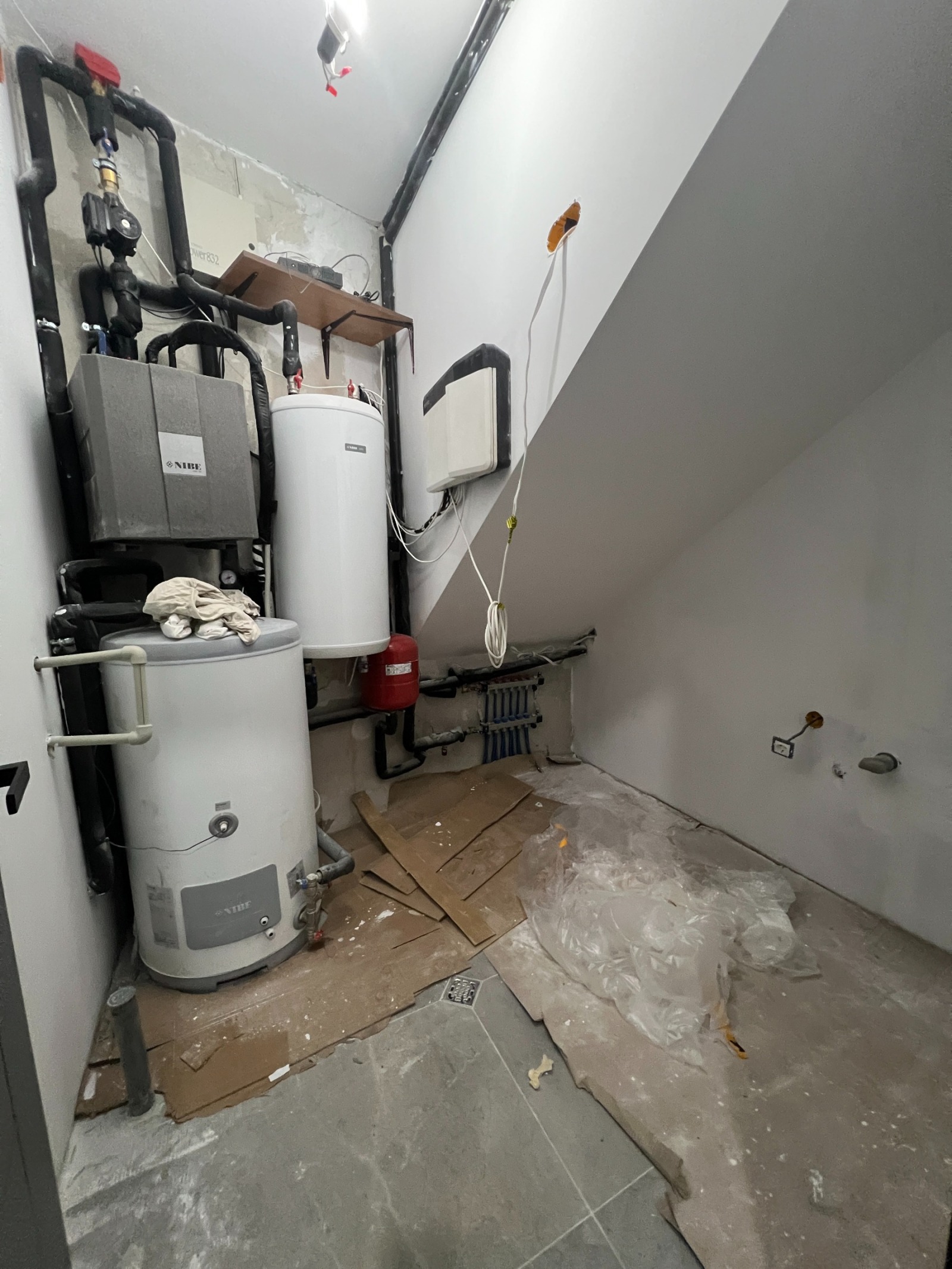 Отоплението е решено с термо помпа с подово отопление и изводи за климатици.
