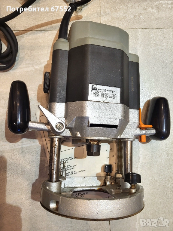 Фрезата е в много добро състояние. Няма дефекти или проблеми, освен малко скъсване на изолацията на захранващия кабел (няма оголени жици под изолир банда), но е изолирано добре. Работи добре, лагерите не се чуват и няма вибрации. Цангата е 12мм.