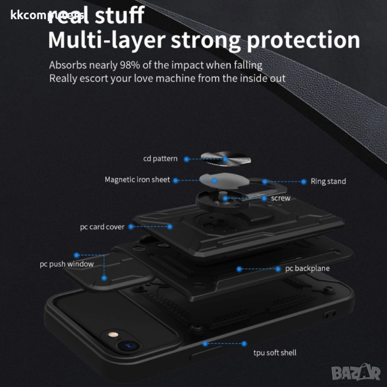 - Хибриден калъф, изработен от качествен и устойчив пластичен материал PU + TPU