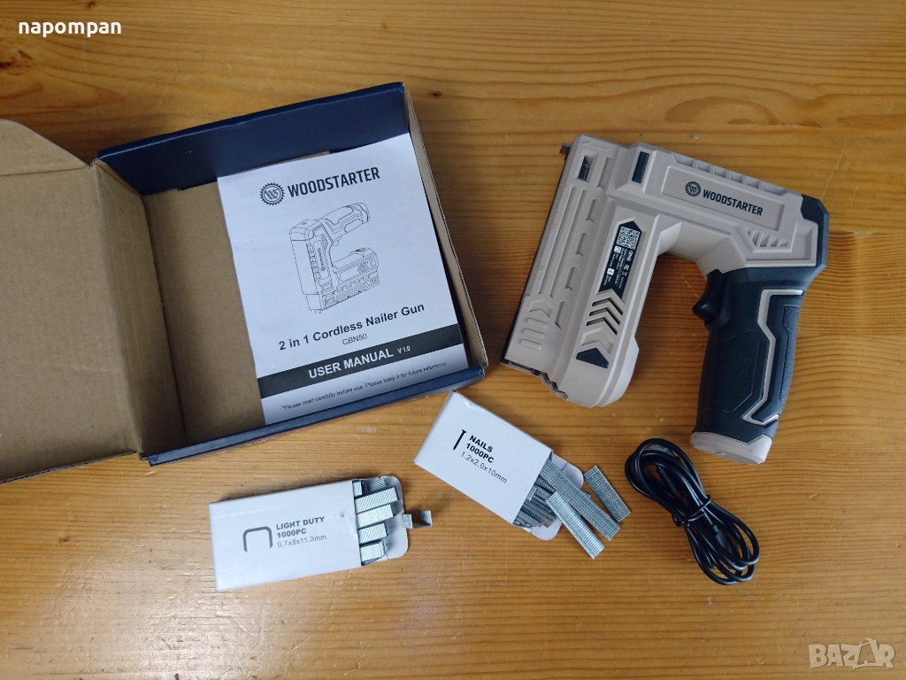 Електрически такер за тапициране с вградена презареждаема батерия WOODSTARTER.