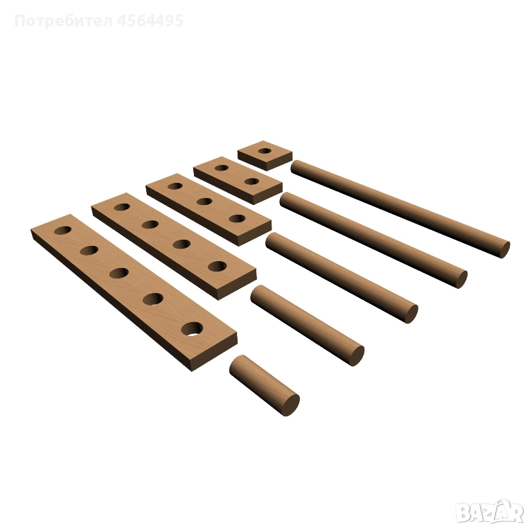 елементи – летвичка с отвори, пръчица и колела. Елементите са изработени от