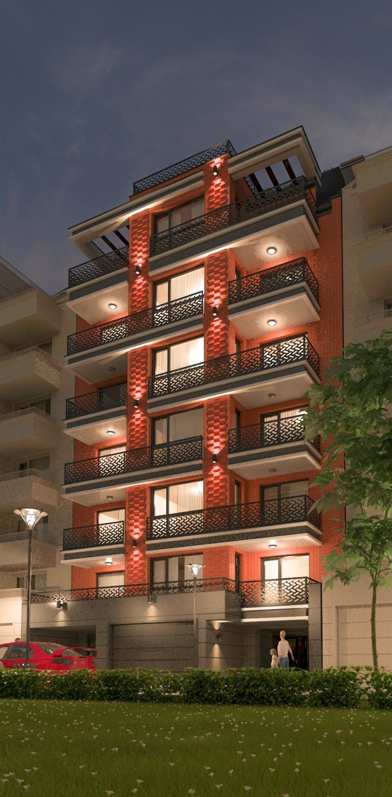 Сградата съчетава съвременен дизайн, индустриална архитектура с материали от най-висок клас и луксозни общи части.