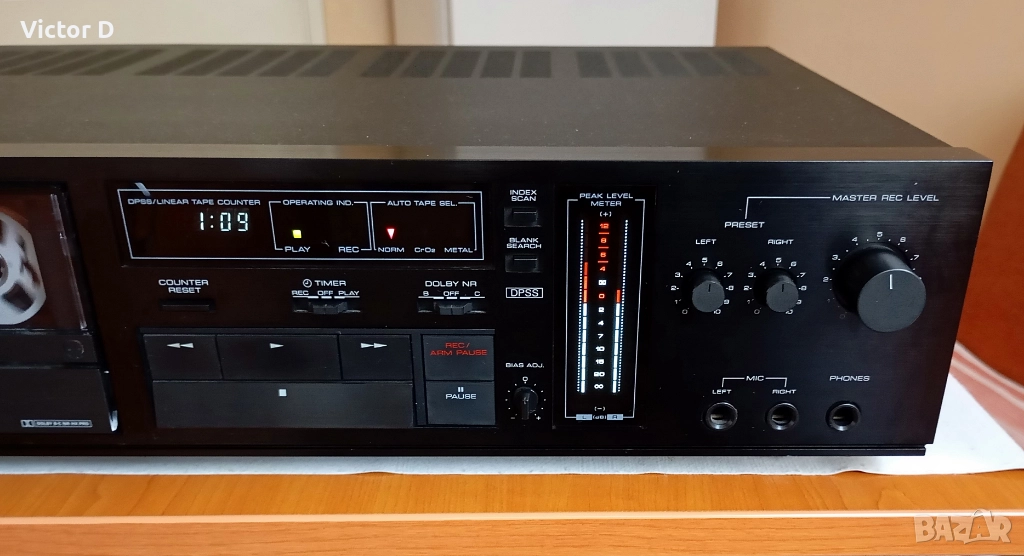 Много запазен визуално.Технически перфектен.Поставена е нова тон ролка.Главата не е износена.Много добър плей и запис.Изведен Биас и много други екстри. Dolby B, C, Dolby HX-Pro.Два мотора.Произведен в Япония.