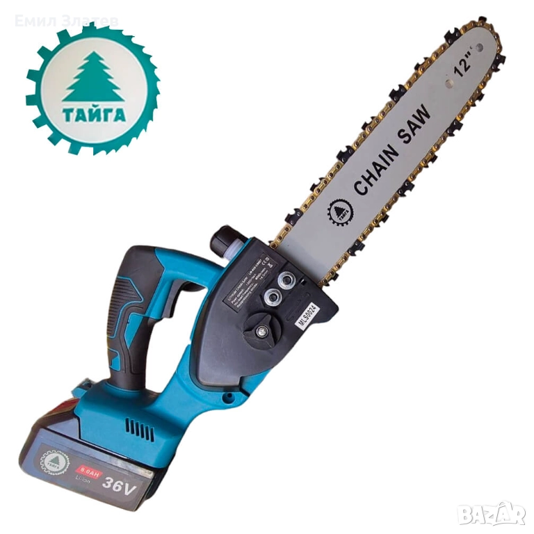 Акумулаторна резачка Тайга 36V Трион за клони с 2 батерии и 2 вериги