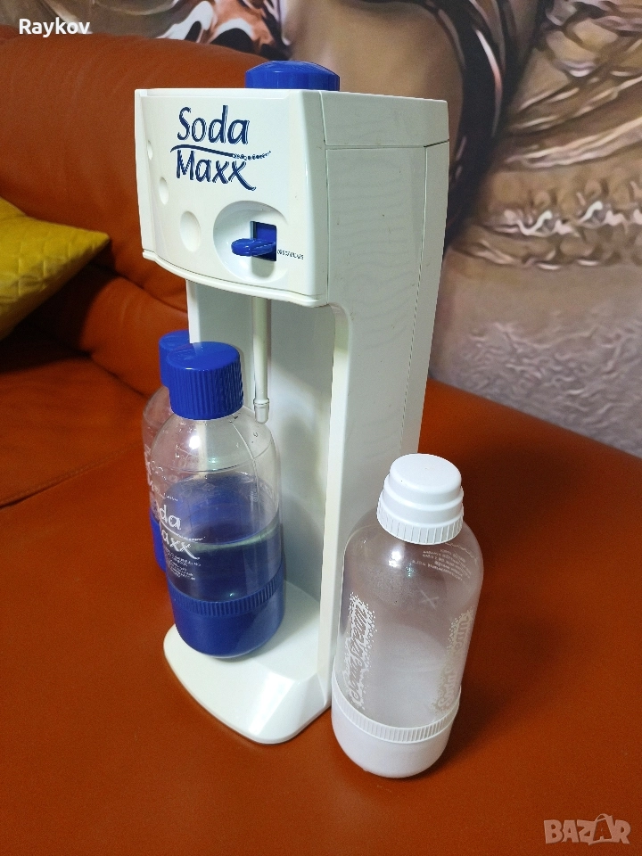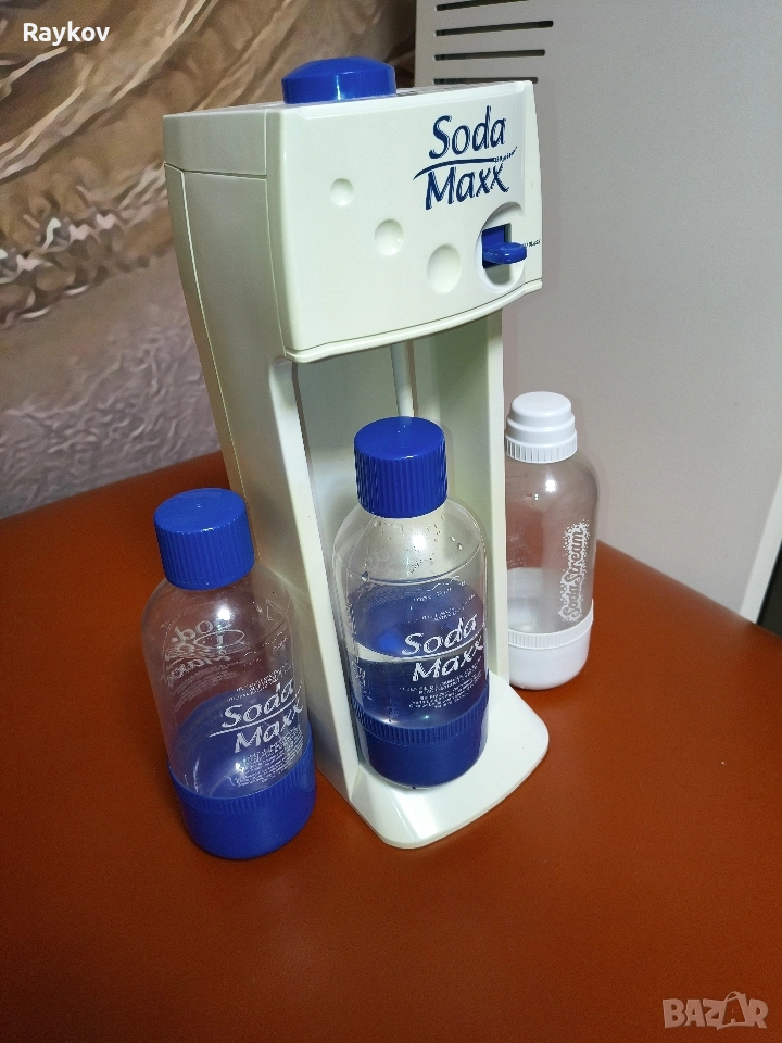 Здравейте,продавам машина за сода закупена в Германия ползвал съм я лично,работи безпроблемно.Комплекта се състои: 1.Машина 1.Бутилка за Со2 3.Бутилки за сода За Варна лично предаване за страната с куриер по ваш избор! Цената е в обявата моля без пазарлъци и бартери!