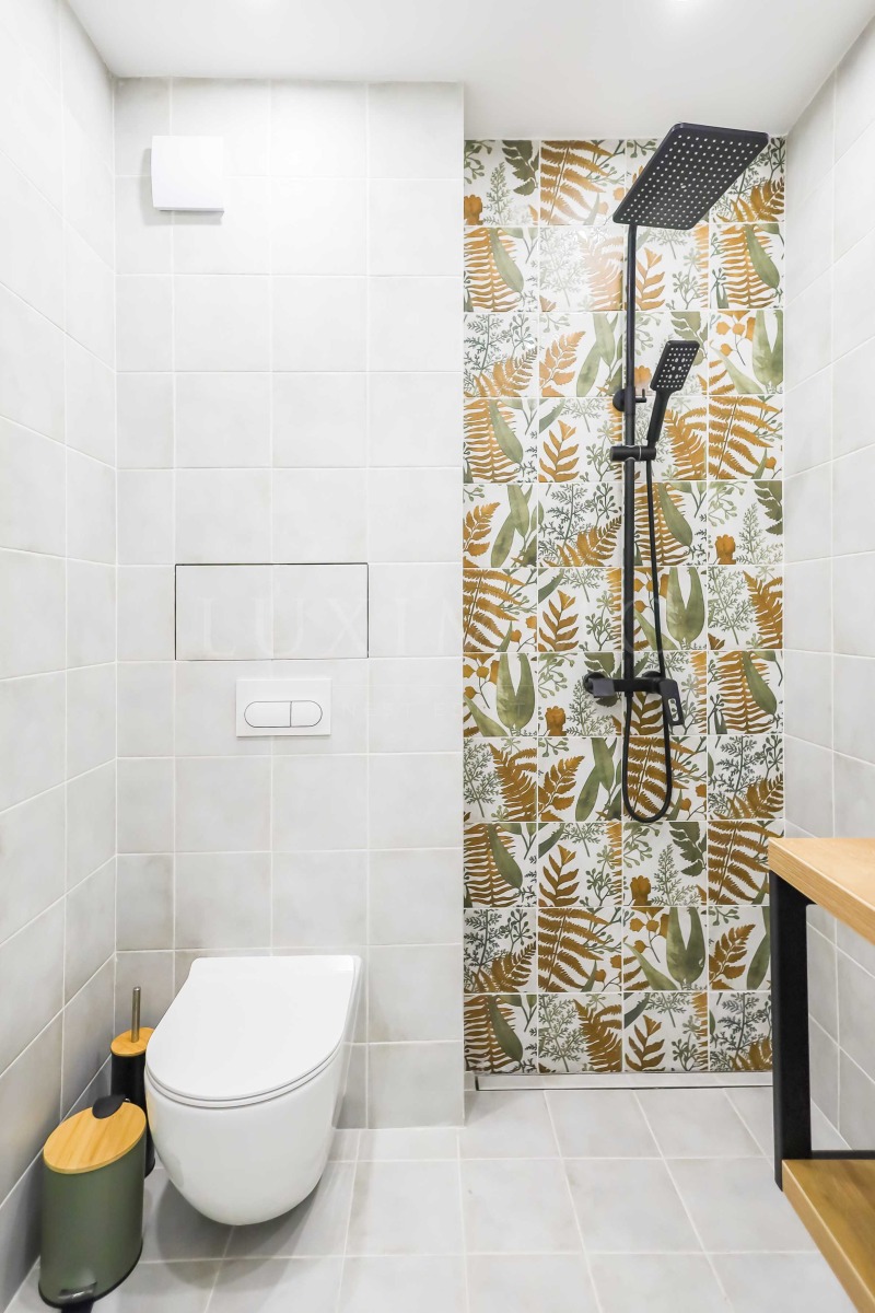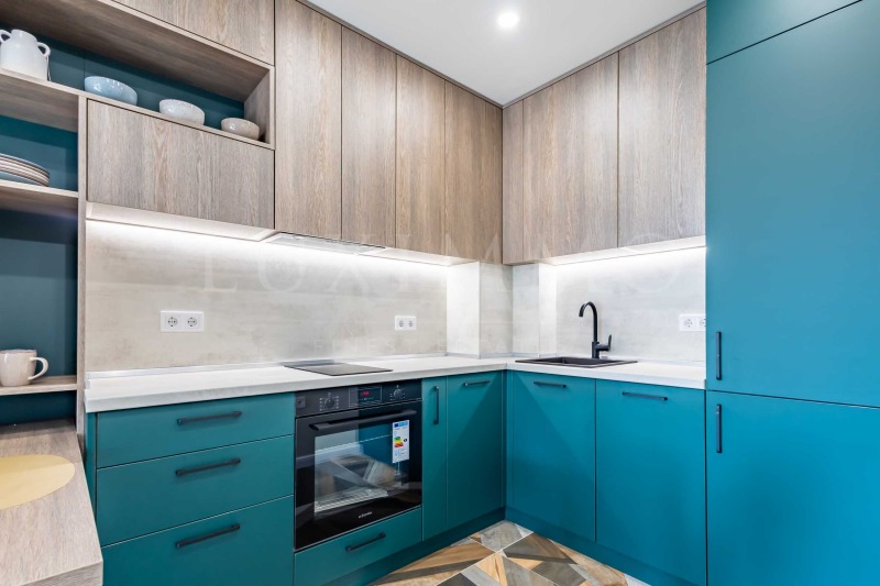 Модерно обзаведено по индивидуален дизайнерски проект, жилището осигурява хармонично пространство за висококачествен живот. Предлага се изцяло обзаведено и оборудвано, разполага с модерни и комфортни мебели, и качествена техника - пералня със сушилня, фурна, съдомиялна машина, телевизор, климатици в двете стаи.