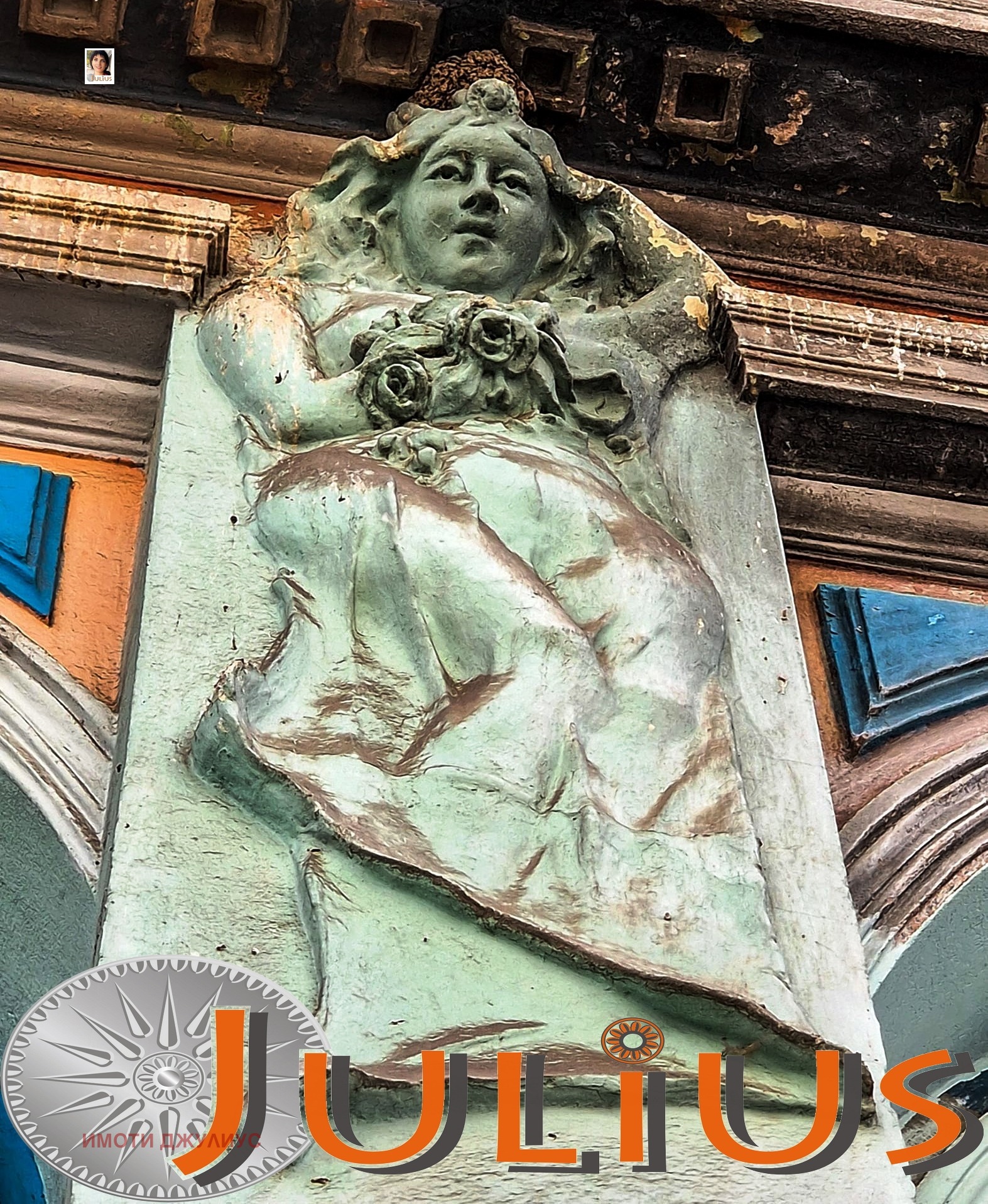 Уникална фасада с барелеф на нимфа с цветя, дъговидни тераси и дограми.