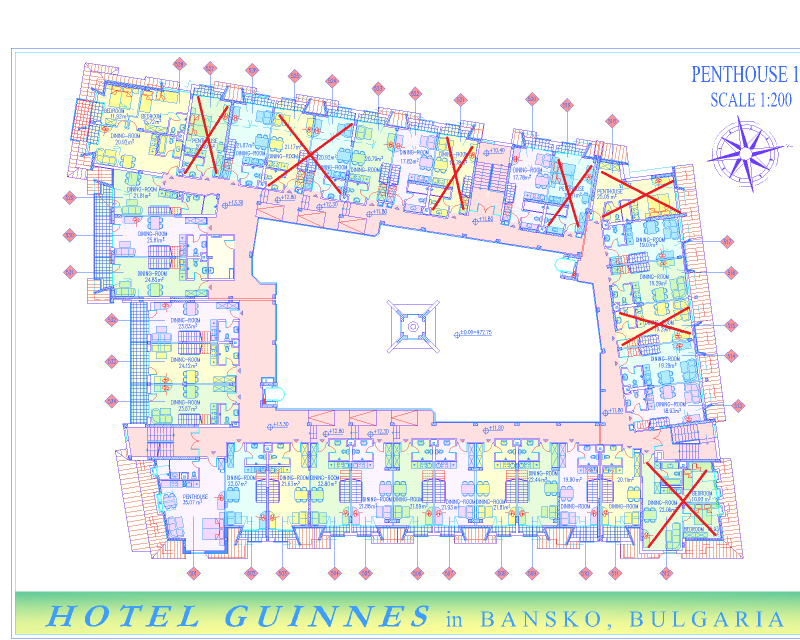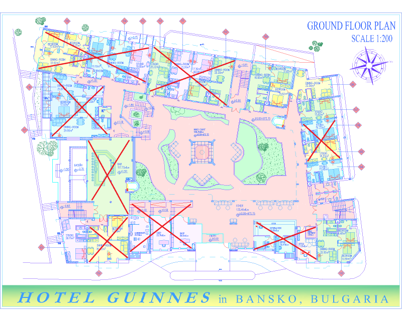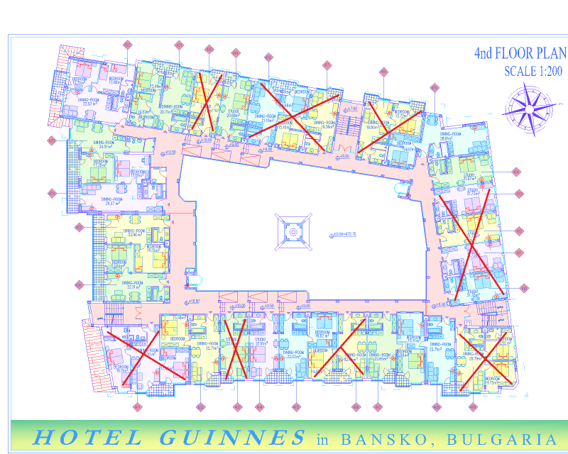От находящите се в Хотел ГИНЕС общо 121 самостоятелни обекта са продадени 46, като със собствениците има сключени договори за менажиране. Остатъкът от самостоятелни обекти, включително търговските и обслужващите, са собственост на фирма МИКРОН ООД.