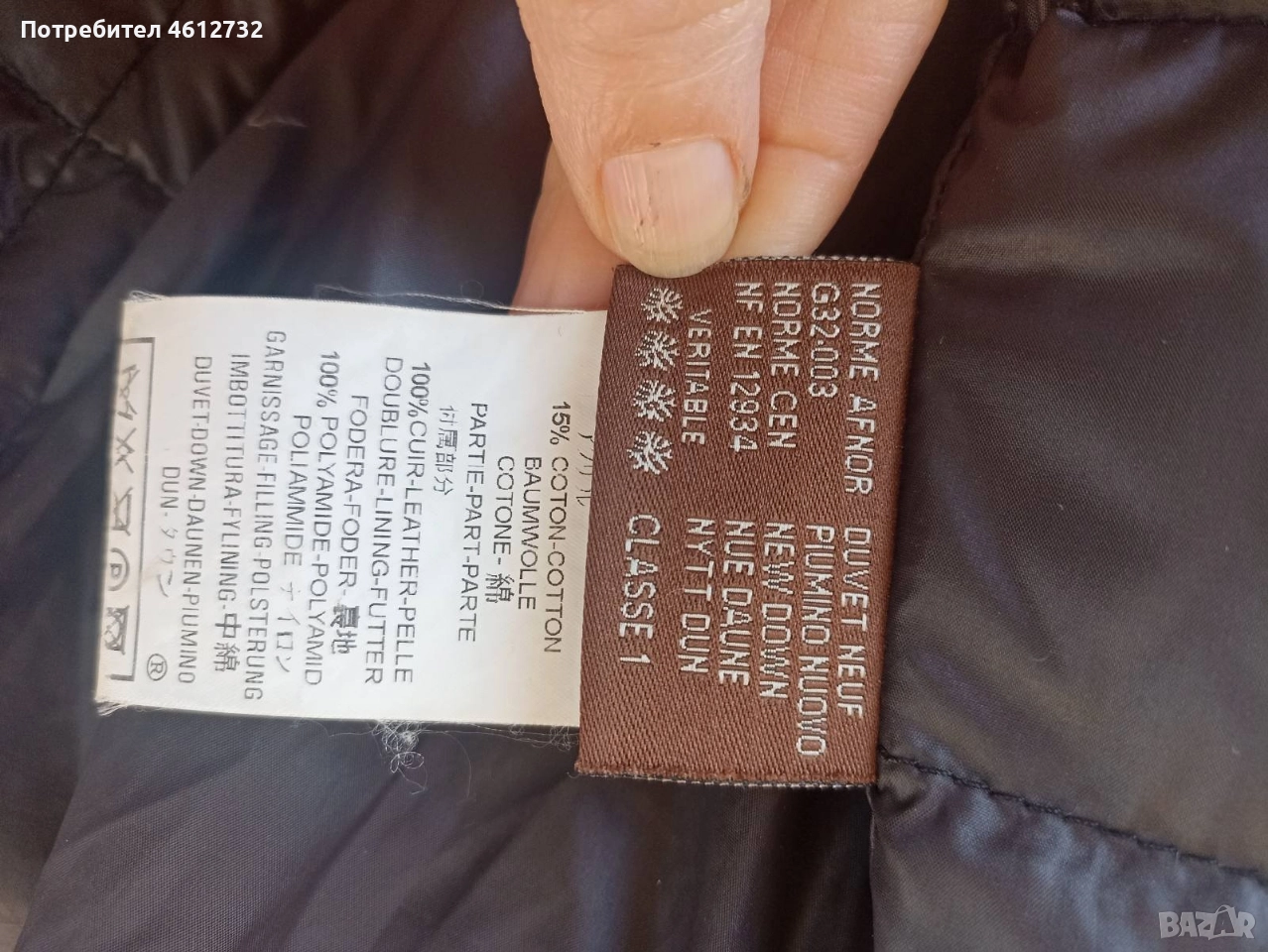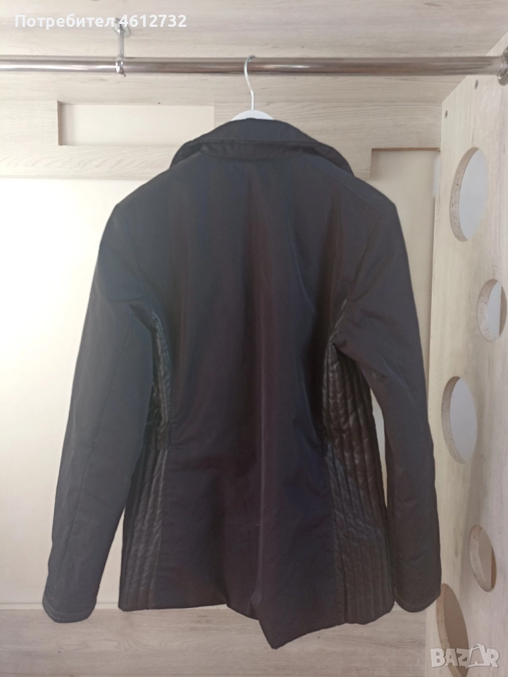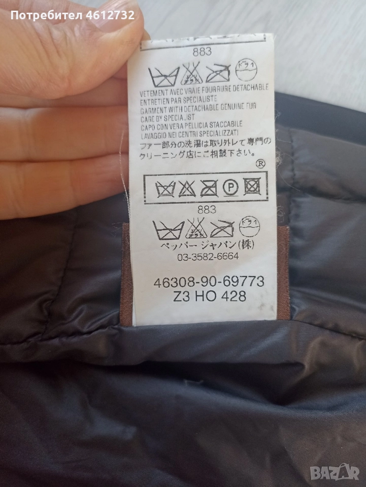 Патешки пух.Полиедтер,памук.Естедтвена кожа отстрани на тялото и маншетите.С цип.Два джоба с цип.Размер L