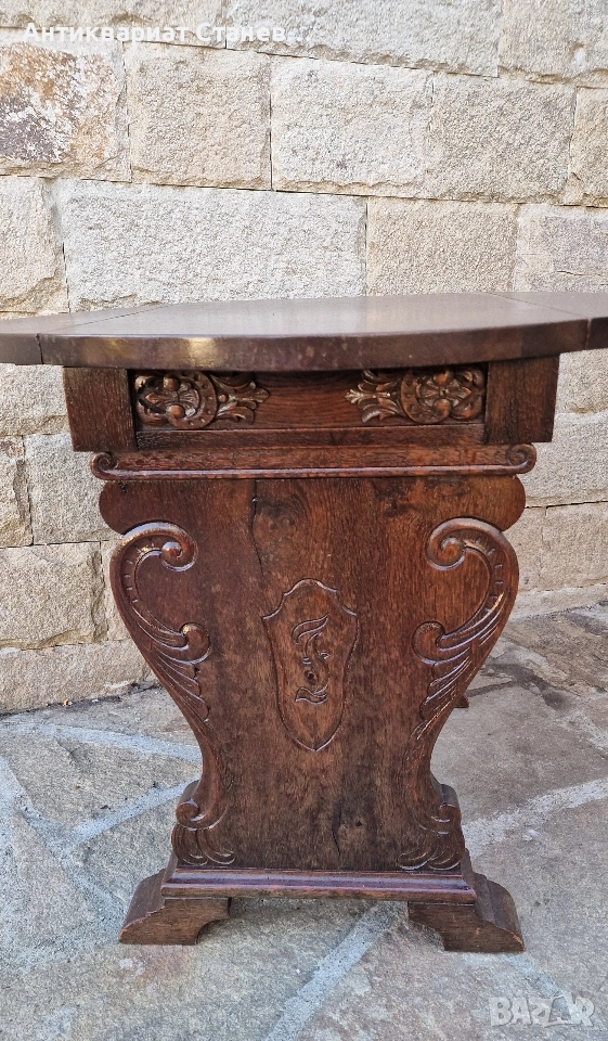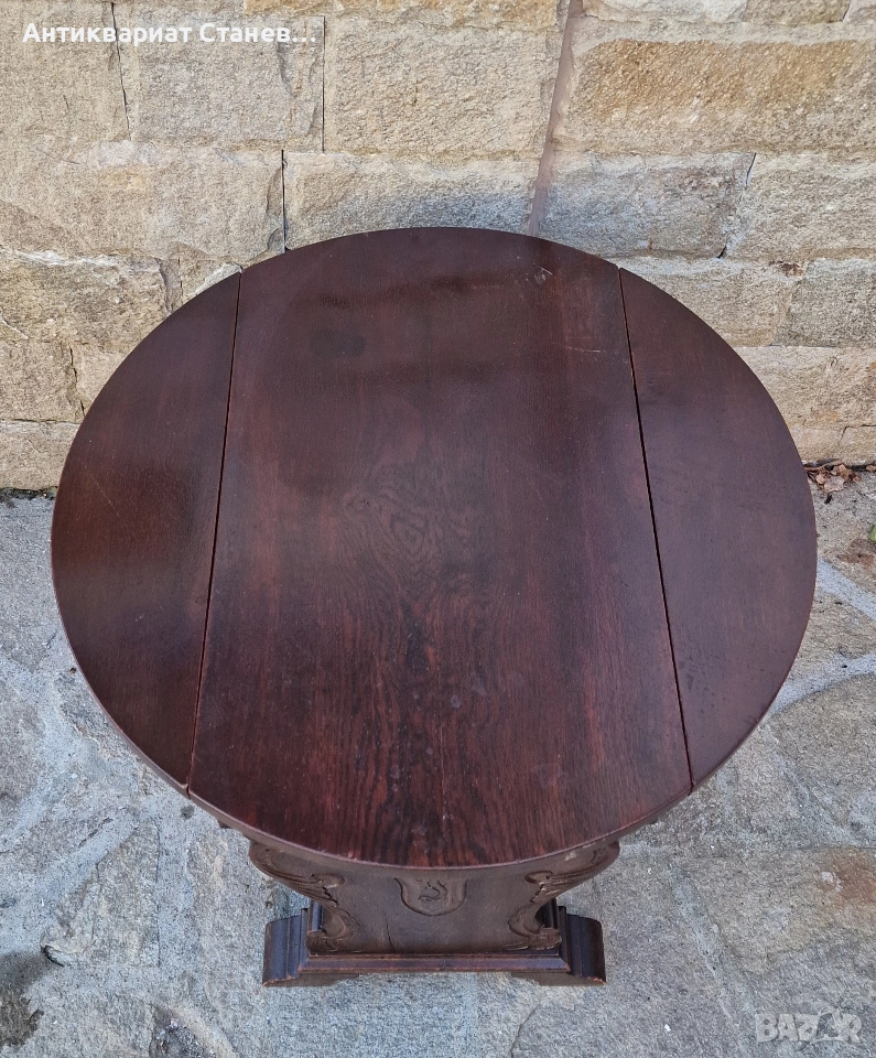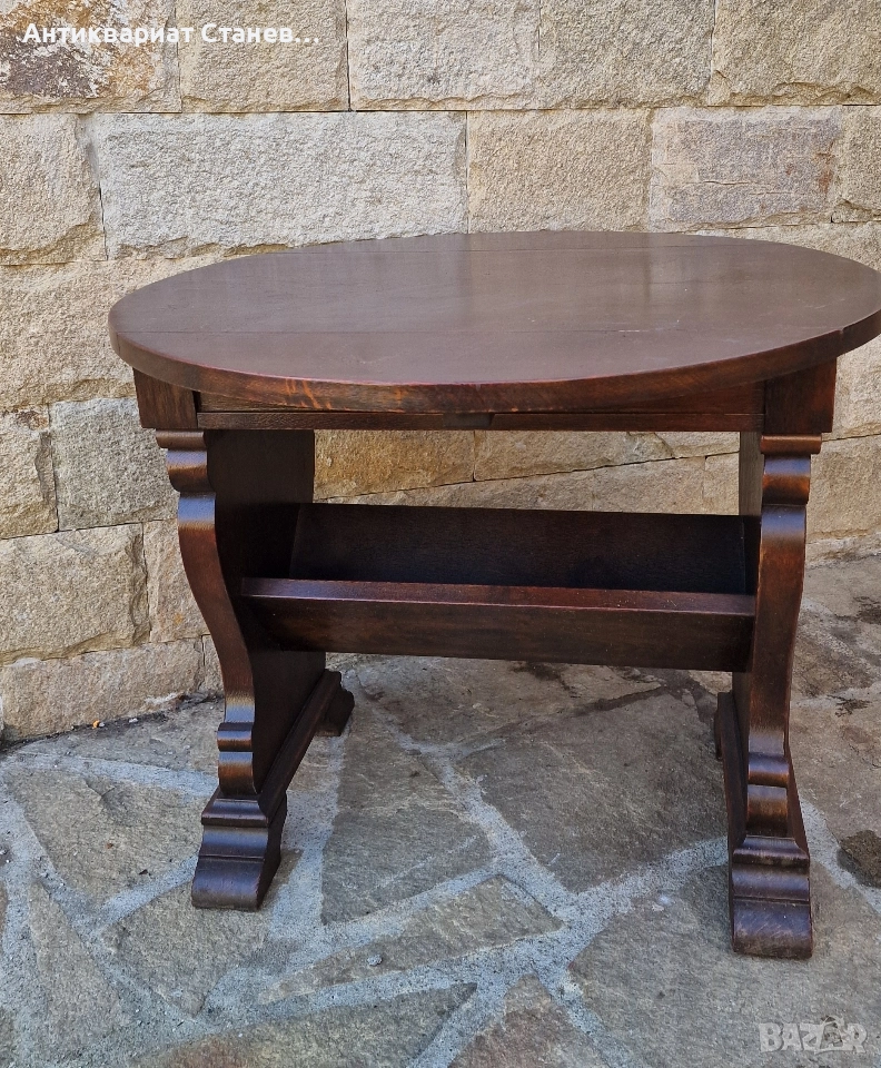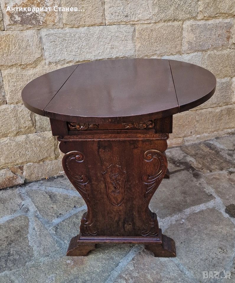 🪵 Красива скандинавска масичка с масивна дървена конструкция, резба по краката и стабилна изработка. Тежка и солидна, с разгъващ се плот и присъствие, което се усеща веднага.