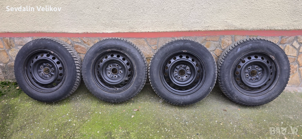 Продавам комплект от 4 бр. зимни гуми с монтирани стоманени джанти (готов за употреба).