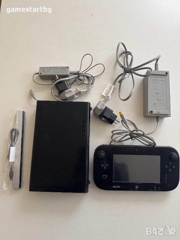 Комплекта включва конзола,контролер-таблет,оригинално захранване за конзолата,оригинално захранване за контролера-таблета,неоригинален сензор бар,HDMI кабел.
