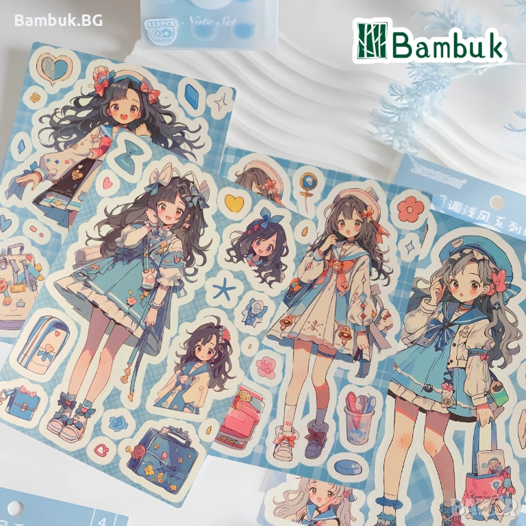 Стикери „LumiBlue“ 💙✨ – стилен комплект с меки сини нюанси и елегантни мотиви, идеален за декорация на тетрадки, дневници, писма или арт проекти.