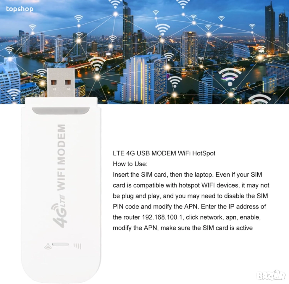 Нов 4G LTE USB модем донгъл със слот за SIM карта, мобилен рутер, точка за достъп за телефон, компют