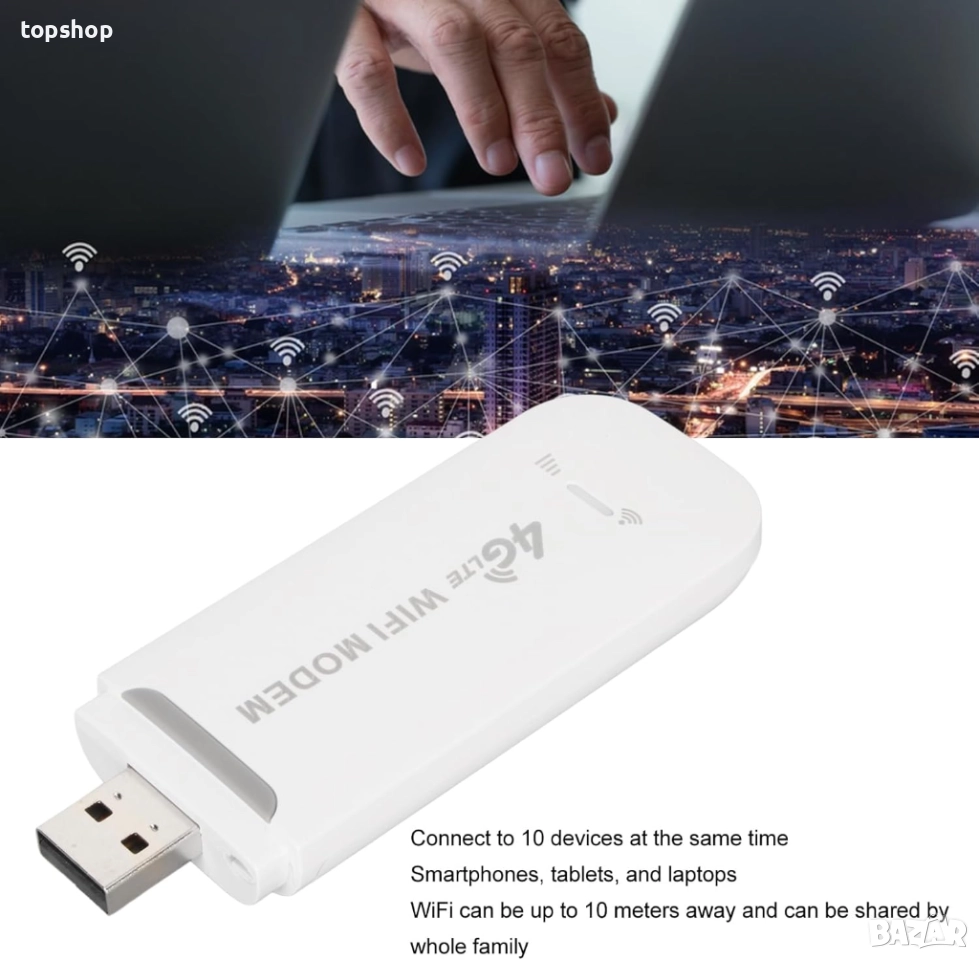 Нов 4G LTE USB модем донгъл със слот за SIM карта, мобилен рутер, точка за достъп за телефон, компютър, лаптоп, таблет, 10 потребители, споделяне, преносим мрежов мини рутер за пътуване
