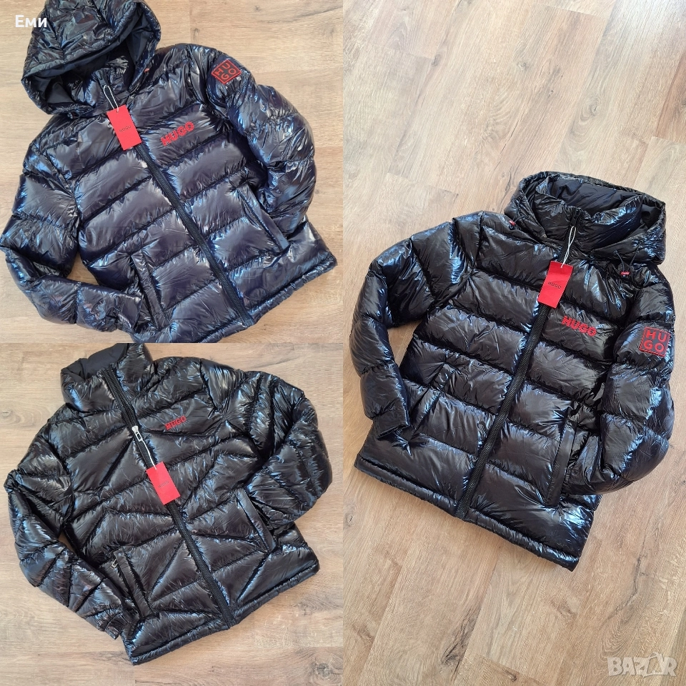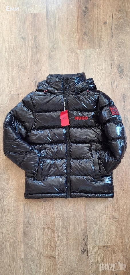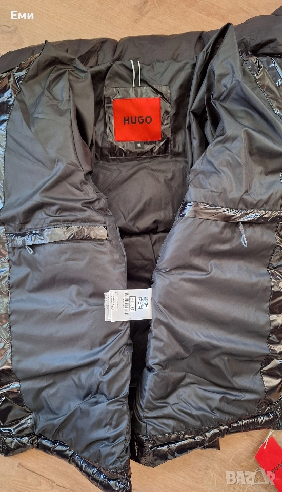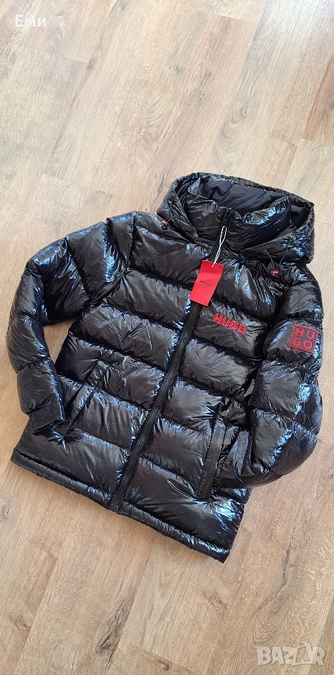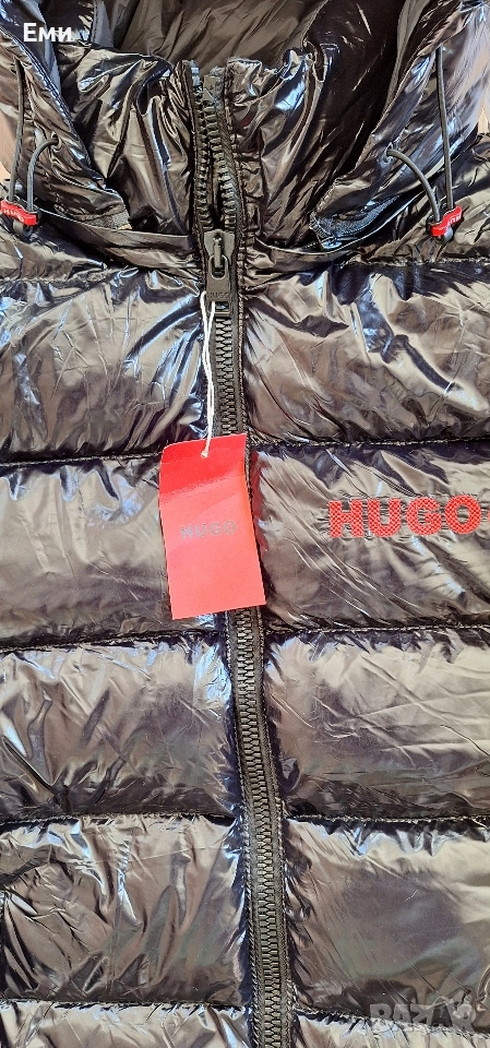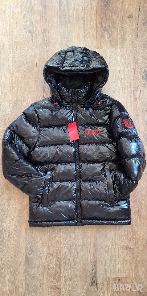 Hugo Boss Черен и тъмно син цвят Размер M,L,XL,2XL Водоотблъскващо яке с качулка от HUGO Menswear, изкроено до определена кройка от материал с висок блясък и лого от червен силикон и бродирано лого. Характеристики: - Яка с качулка, сваляща - Закопчаване отгоре: Закопчаване с цип - Вътрешни джобове с цип - Еластични маншети - Напълно подплатени - Стандартна дължина Размери подмишница и дължина: М - 55см/ 70см L - 57см/ 70см XL - 59см/ 71см 2XL- 61см/ 72см Бърза доставка с Еконт или Спиди с преглед и тест преди плащане.