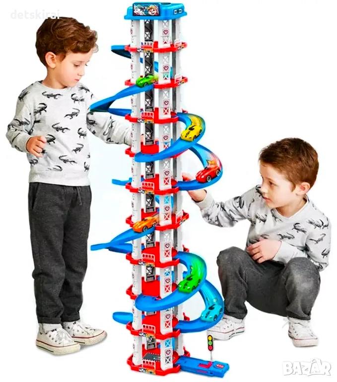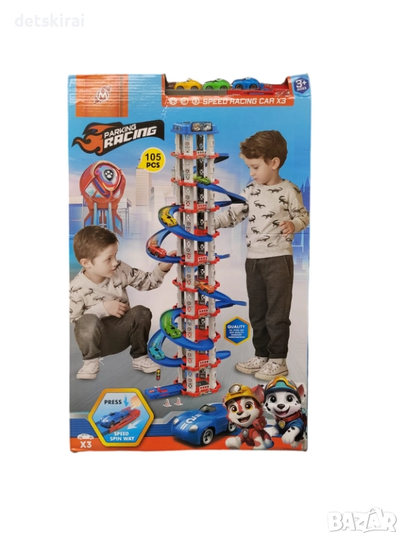 на комплекта за игра Paw Patrol Spiral Parking Racing Track за деца.