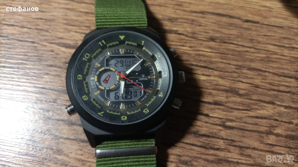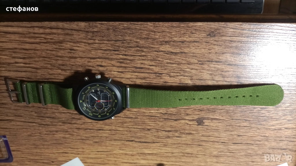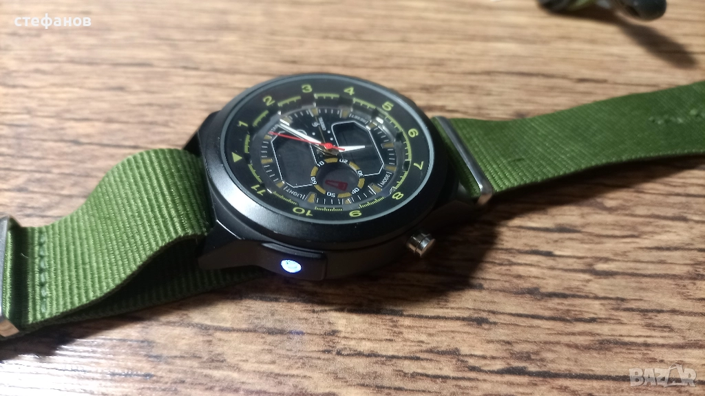 Моля да зачетете внимателно текста към обявата, защото в него е обяснено подробно. На въпроси отговарям тук на съобщение от Вас. Активна ли е обявата може направо да си поръчате харесаното. Часовника е като нов, не му е махната отзад дори предпазната лепенка. Много приятен. Интересното е, че има и фенерче. Най-ниската му цена е 110 лв, така че моята цена от 60 лв е напълно