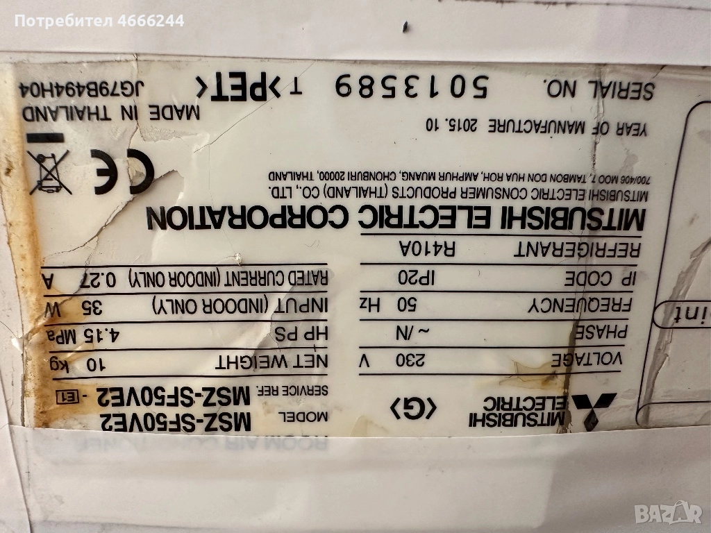 Вътрешно тяло Mitsubishi SF50 работещо, цяло или на части