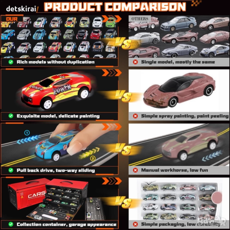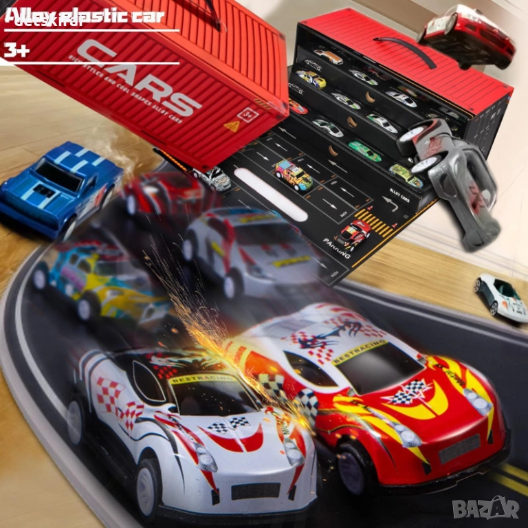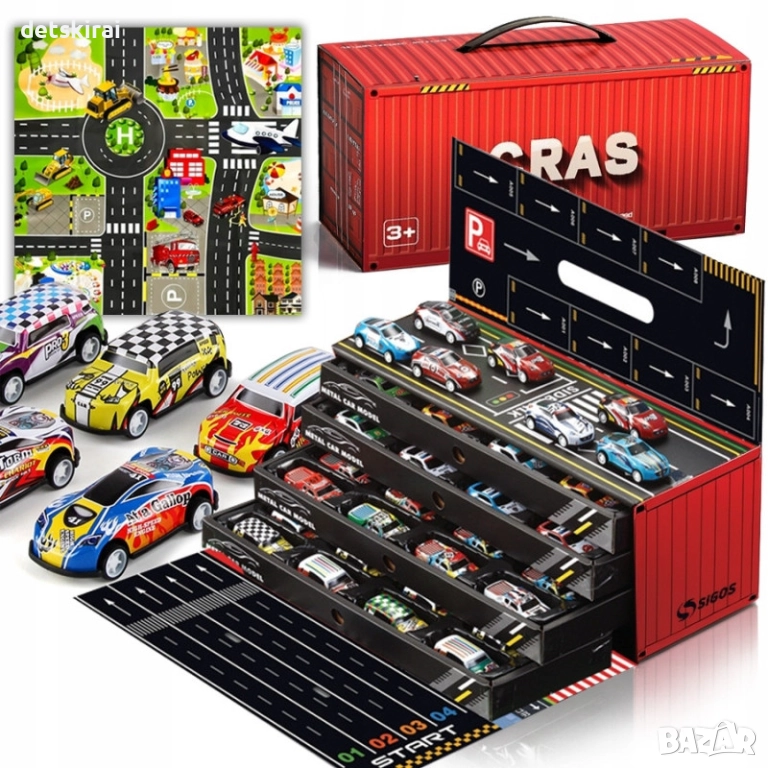 Защо да носите една количка, когато можете да носите 48? Този куфар за играчки с дизайн на индустриален контейнер е перфектното решение за малките автомобилни фенове в движение. Той съчетава практичността на кутията за съхранение с вълнението на състезателната писта.