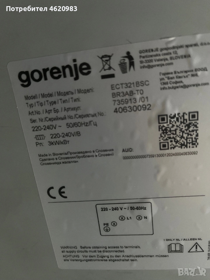 Котлон СТЪКЛОКЕРАМИЧЕН ПЛОТ GORENJE ECT321BCSC → Обява 52618813