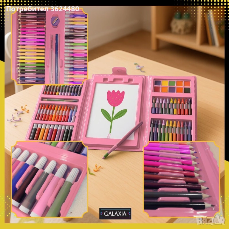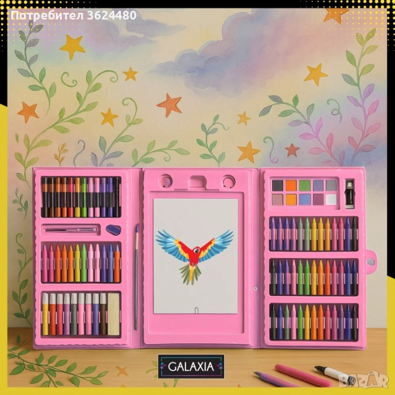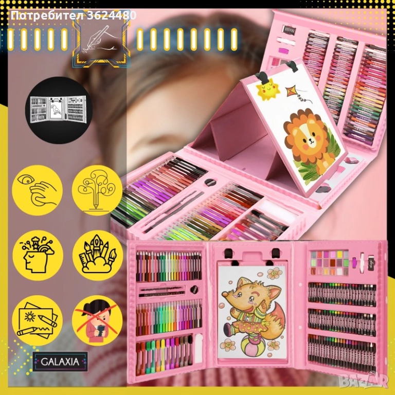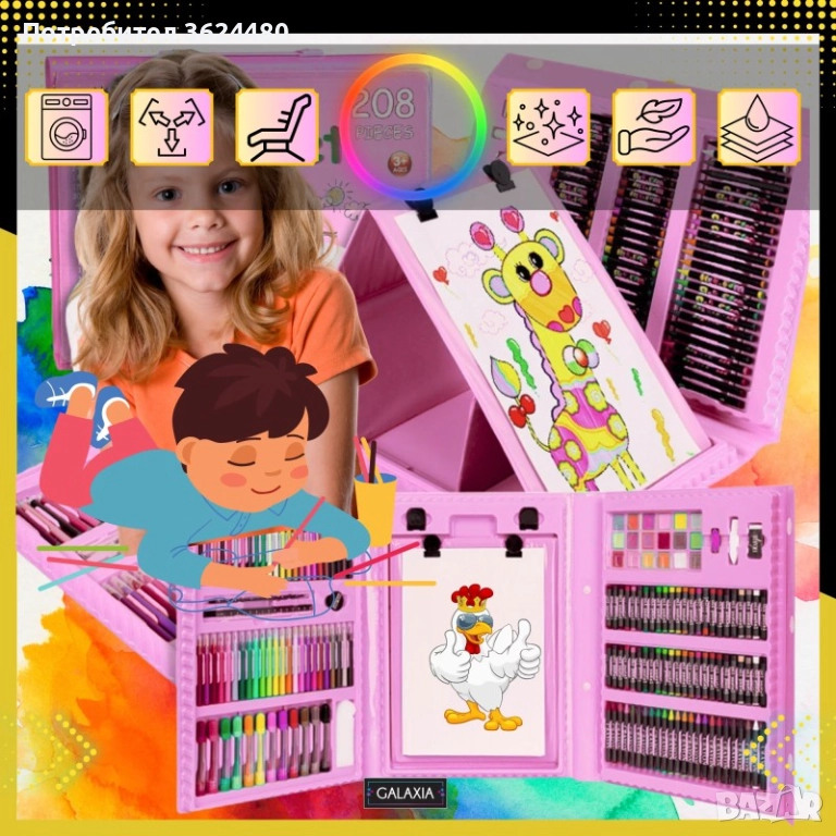 Комплектът за рисуване включва 208 части: