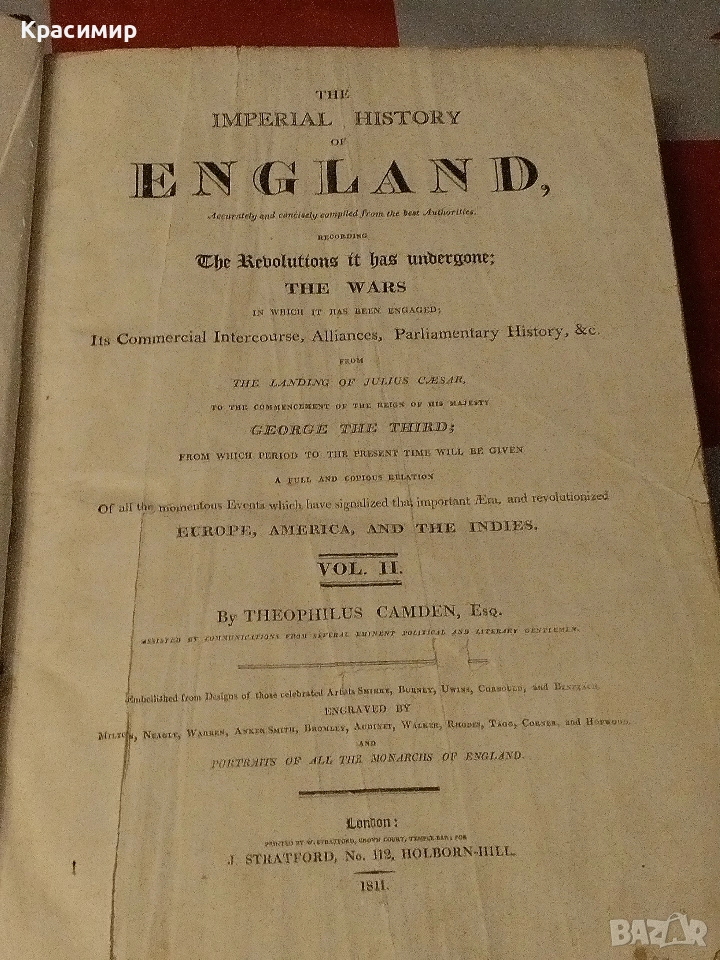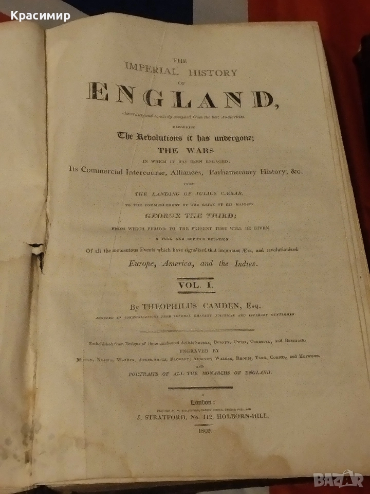Имперска История на Англия.1809,1811 г .Май са Единствените В Света . THEOPHILUS CAMDEN .VOL.|.-VOL.|Няма ги Никой .