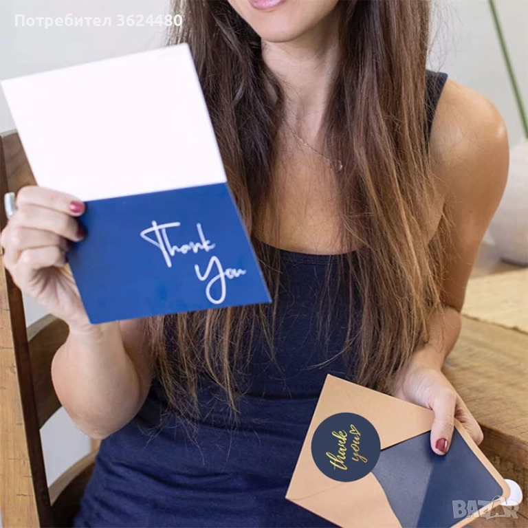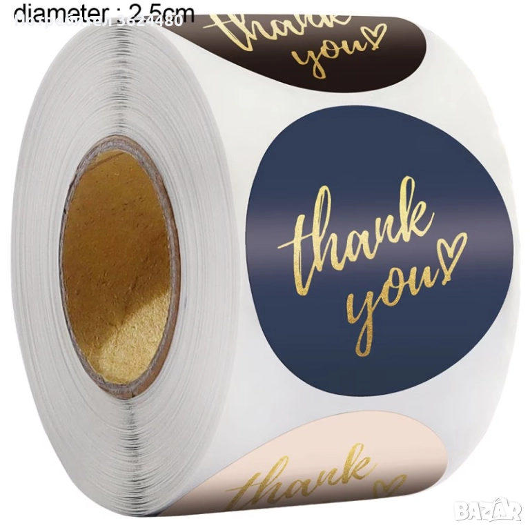 Получавате 1 брой Ролка с 500 броя кръгли самозалепващи стикери „Thank You“ (Мултицветен комплект със златно фолио)
