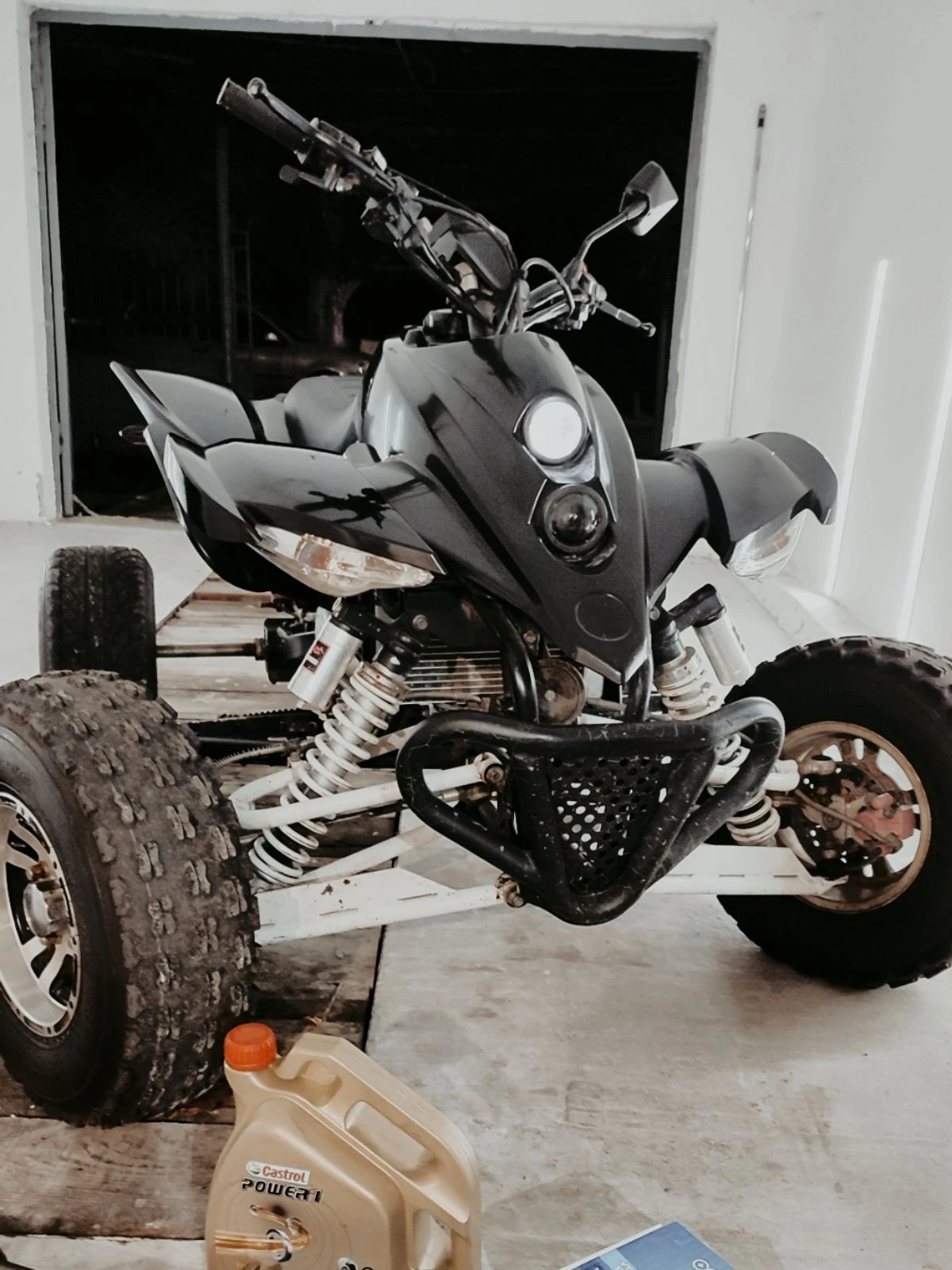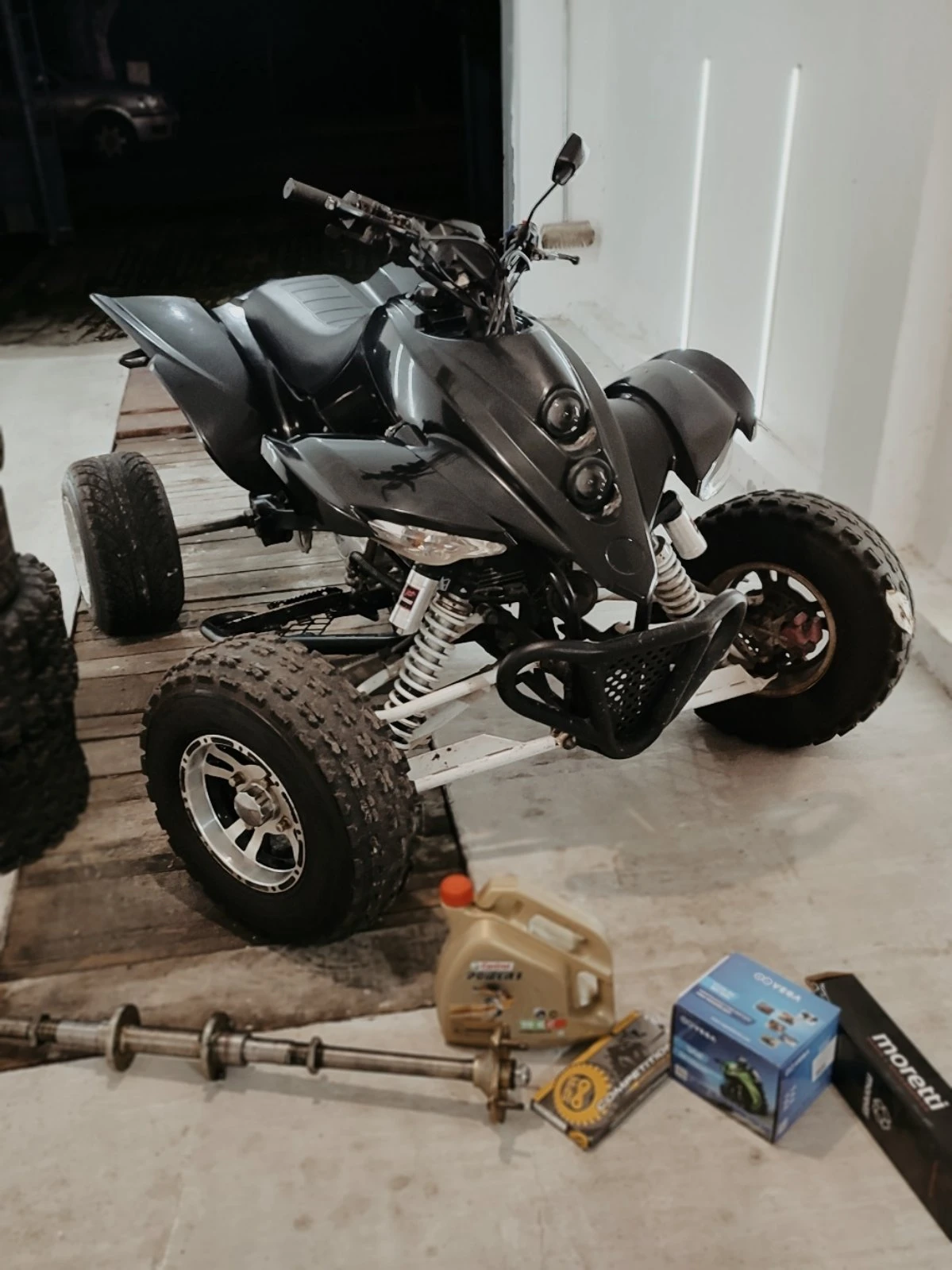 Продавам си АТВ-то, в много добро техническо състояние, с доста нови + допълнителни резервни части към него. Неща които съм сменил с чисто нови: Акумулатор Верига + зъбчатки Лагери и семеринги на задната ос Задни накладки Цилиндър, бутало, сегменти, бутален болт Всички гарнитури Нов стоп Прясно масло LED крушки (по-ниска консумация, по-добра визия) Претапицирана седалка АТВ-то е ревизирано, няма скрити проблеми. Съединителят, спирачките и скоростите работят както трябва. Има фланци отзад. Бонус към АТВ-то: Резервна задна ос + чисто нова главина 2 броя задни гуми таралежки в добро състояние 2 броя асфалтови гуми 2 литра Castrol JASO2 за бъдеща смяна Документи и състояние: Регистрирано, всичко платено, готово за каране. Има дребни външни забележки, нормални за годините. Възможен лек коментар на място в рамките на разумното.