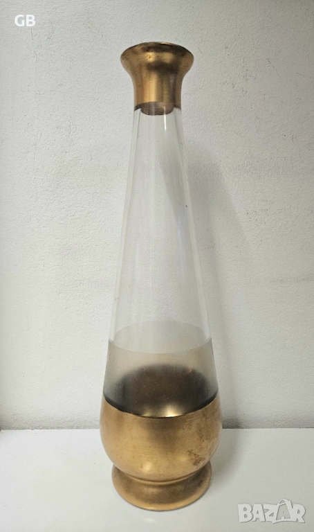 4. Висока стъклена ваза във формата на бутилка със златни кантове