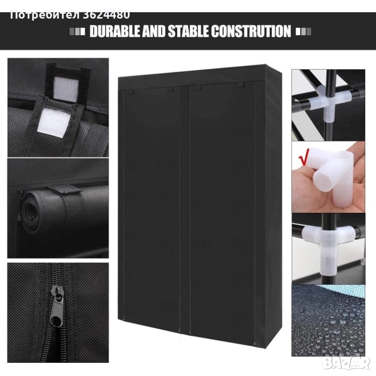 Поддържайте обувките си чисти и подредени с този елегантен черен двоен текстилен стелаж за обувки! Сглобяемият стелаж е проектиран с двойна конструкция с общо 12 просторни рафта (2 реда по 6 рафта – забележка: въпреки че технически е посочено 9 рафта, визуално и в заглавието са 12), осигуряващи максимален капацитет за съхранение. Нетъканият текстил и затварянето с 2 броя ципове и велкро лепенки за навиване надеждно предпазват от прах и замърсявания. Металната рамка и пластмасовите съединители гарантират бързо сглобяване и стабилност.