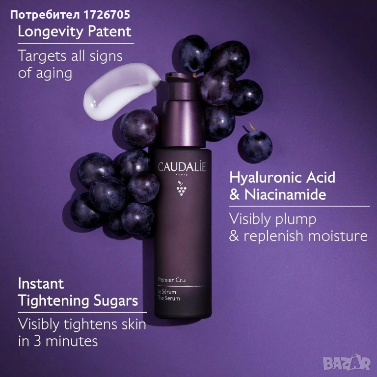 Caudalie Premier Cru The Serum - вашият ключ към млада и безупречна кожа. Този серум, разработен в сътрудничество с Медицинския университет на Харвард, включва най-новите научни постижения и биотехнологии. Той е предназначен за цялостна грижа против стареене, осигурявайки дълбока хидратация и видимо намаляване на признаците на стареене. Серумът е идеален за ежедневна употреба, както сутрин, така и вечер, и е създаден да възстанови младостта и сиянието на вашата кожа благодарение на уникалната си формула с висока концентрация на активни съставки.