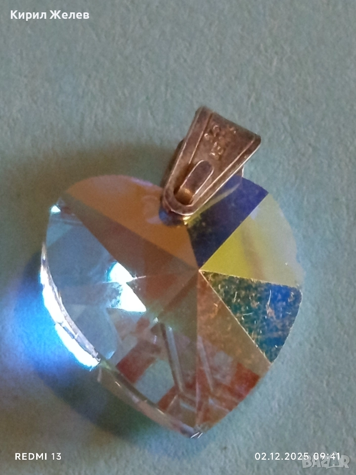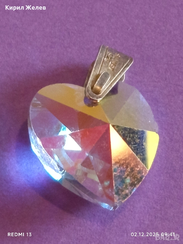 Сребърна висулка във формата на сърце с кристал SWAROVSKI Северно сияние 17542