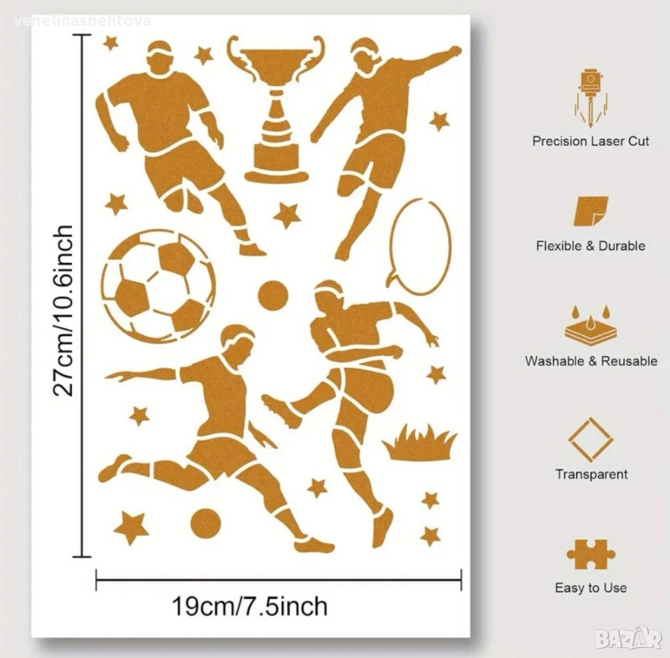 Футбол футболисти купа шаблон стенсил за декорация на торта скрапбукинг дърво текстил , снимка 1 - Други - 52621676 Футбол футболисти купа шаблон стенсил за декорация на торта скрапбукинг дърво текстил , снимка 2 - Други - 52621676 Футбол футболисти купа шаблон стенсил за декорация на торта скрапбукинг дърво текстил , снимка 3 - Други - 52621676 Футбол футболисти купа шаблон стенсил за декорация на торта скрапбукинг дърво текстил , снимка 4 - Други - 52621676 1/4