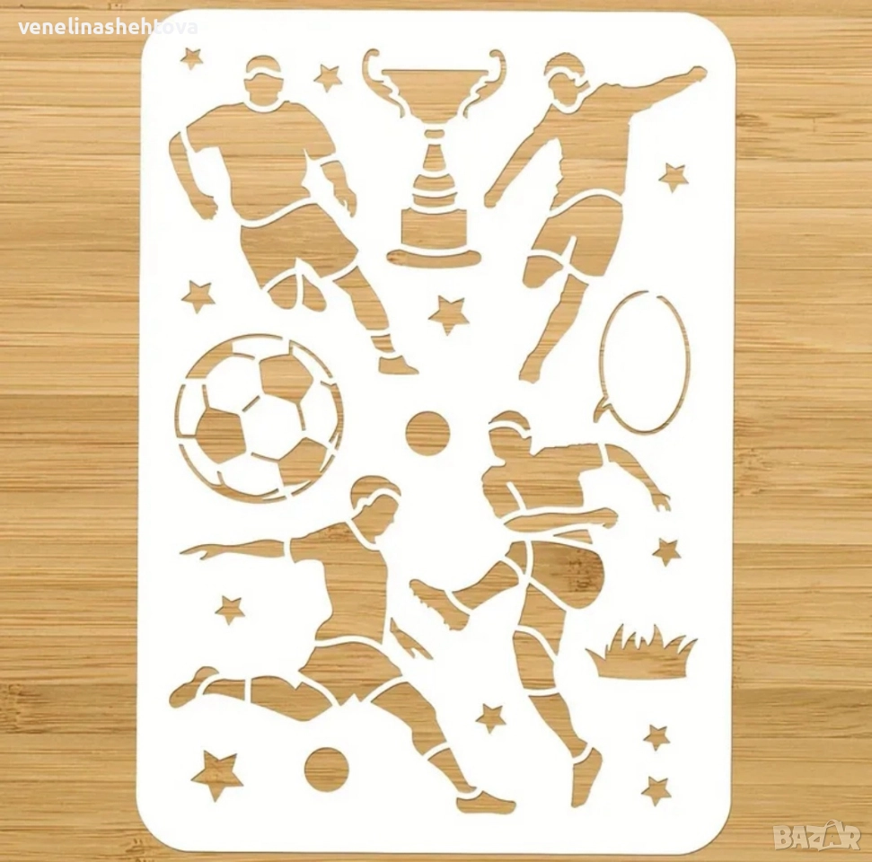 Футбол футболисти купа шаблон стенсил за декорация на торта скрапбукинг дърво текстил → Обява 52621676