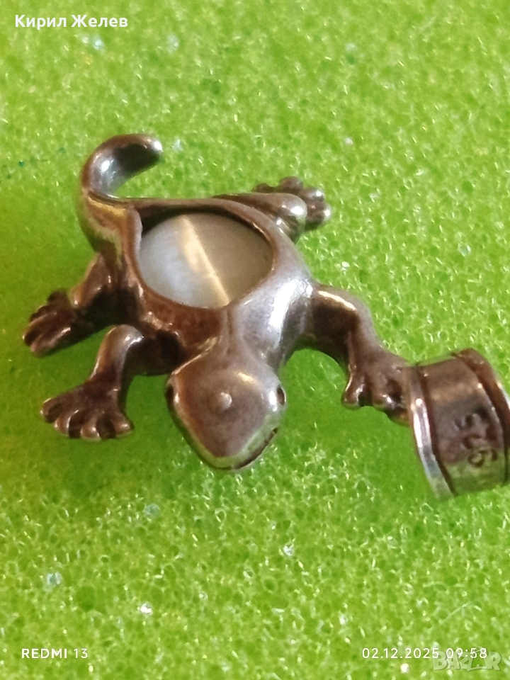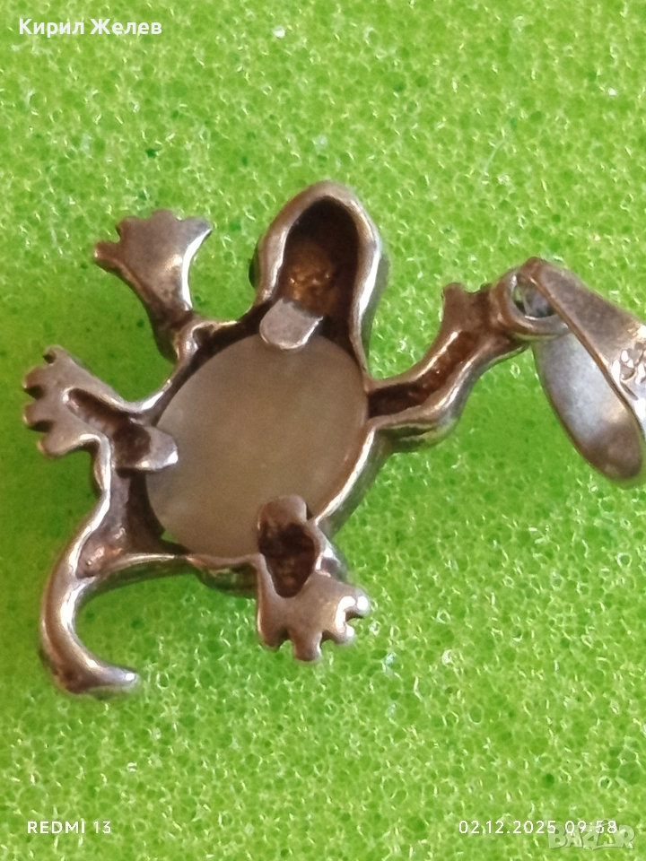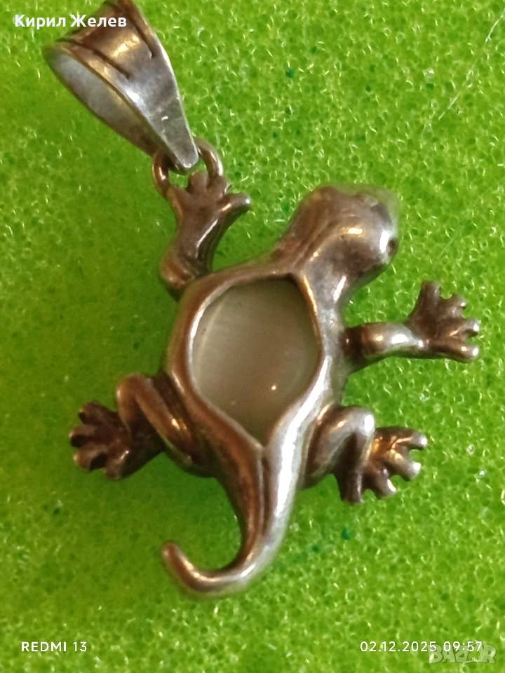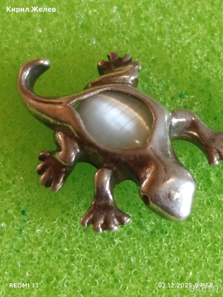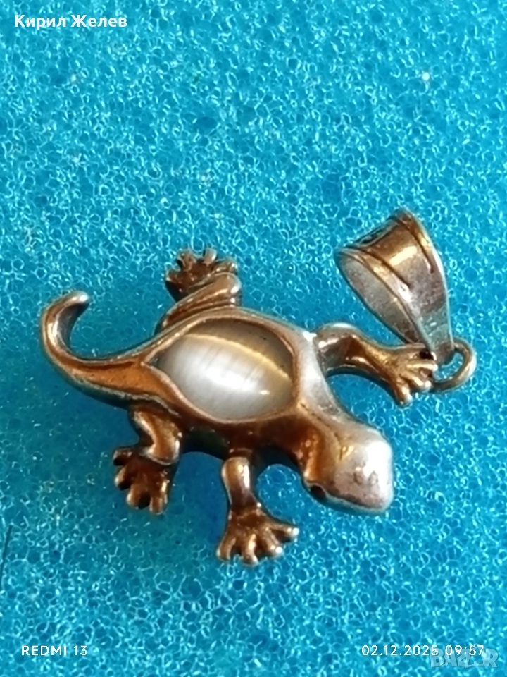 Сребърна висулка гекон с вграден лунен камък майсторска ръчна изработка 49278