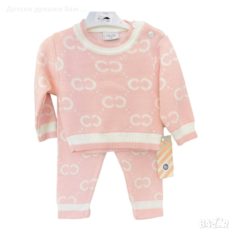 Горнището е с красив плетен десен и фини детайли, а панталонките пасват идеално за пълна и завършена визия.