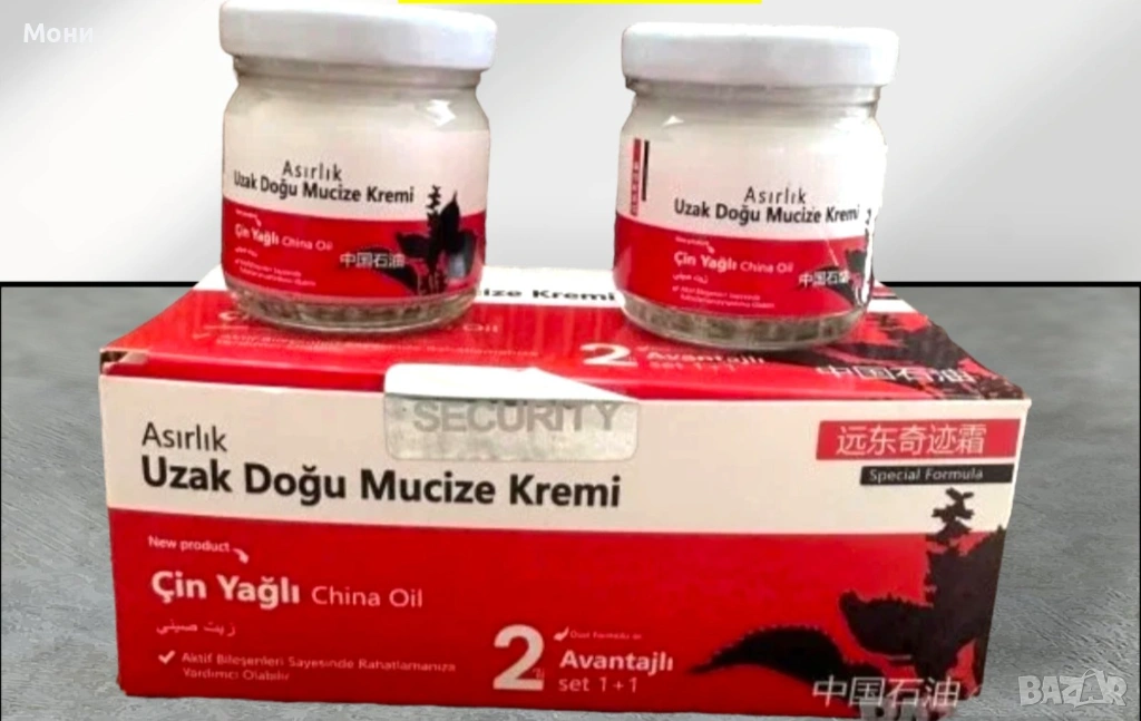 МАГИЧЕСКИ КРЕМ ЧУДО ЗА СТАВНИ БОЛКИ - 2бр. в опаковка по 40гр - се използва за употреба при всички болки по тялото. ОРИГИНАЛЕН ПРОДУКТ С ДОКАЗАНА ЕФЕКТИВНОСТ И СЕРТИФИКАТ ОТ ПРОИЗВОДИТЕЛЯ. Лумбална херния, херния на врата, болки в краката, мускулни болки, ревматизъм, ставен ревматизъм. Чудото на чудесата този крем има различна формула, внесени от Източна Азия в момента е новото откритие в Турция. Медикаментът за чудодейния крем се прави изцяло от естествени суровини. Чудото крем може да се използва за цялото тяло. Подходящ за мъже и жени. Чудодейният крем се състои от богати минерали и витамини Съдържание: масло от пипер, евкалиптово масло, пипер екстракти, мащерка масло, зехтин, черно масло, антифлистин, ментол, хвойна масло, озонирано масло и мента Употреба: Външно, Опаковка: 2 крема. При Болка се прилага по 1 масаж на ден. При мускулни спазми, При мускулни болки, При болки в ставите, При контракции и болки в гръдните мускули, При болки в мускулите на гърба, При наранявания и навяхвания, При травматични ситуации като мускулни крампи, При главоболие и мигрена, При ревматични болки, Болка, която предотвратява движенията на ставите, Травми на коляното и менискус, Може да помогне за ускоряване на кръвообращението. Годно до 11/2026г. Изпращам със Спиди или Еконт. Телефон за поръчка: 0898331258 или пишете на лично съобщение.
