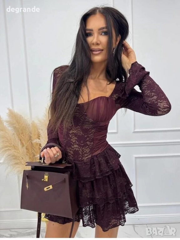 Дантелена дамска рокля налична в Бордо Черно и Бяло → Обява 52622302