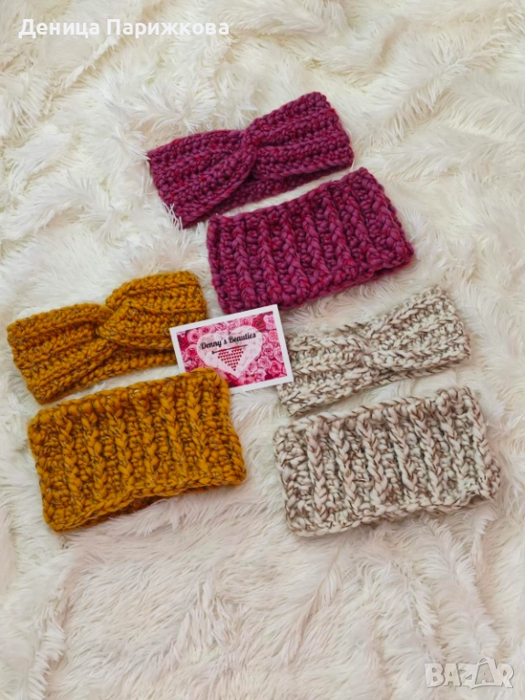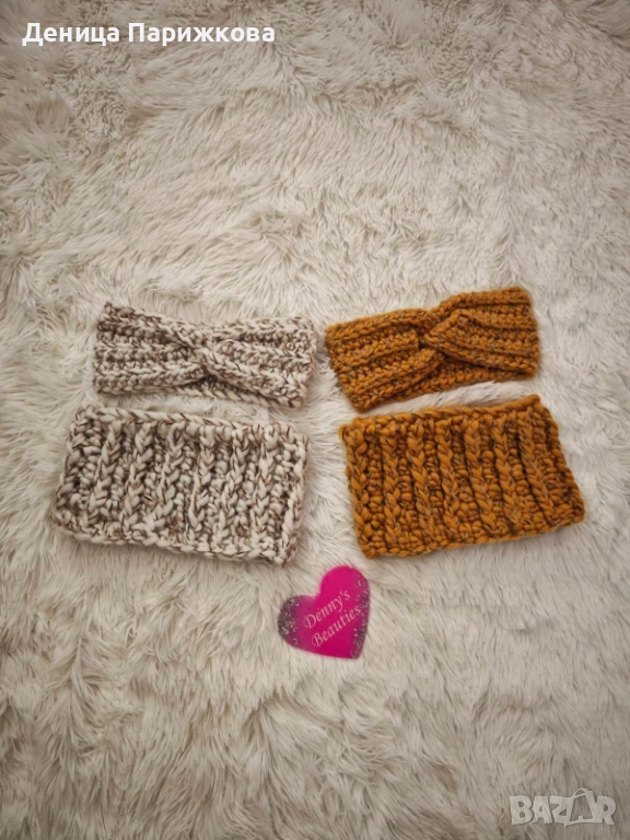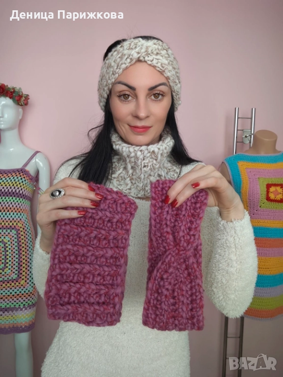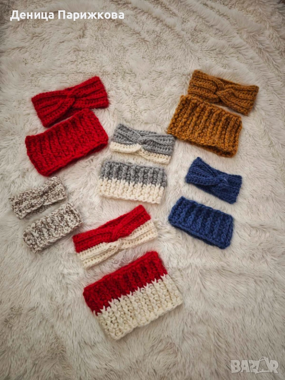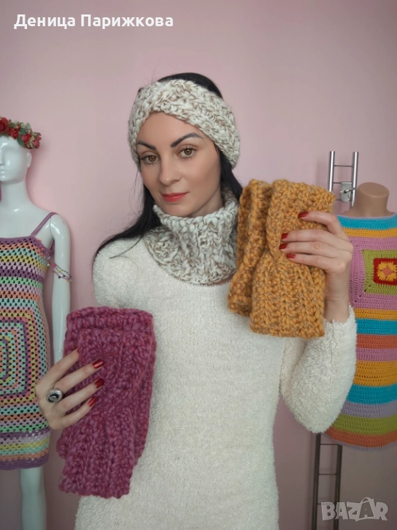 Ръчно плетен комплект лента за глава и снуд шал модел Ариа в 5 размера