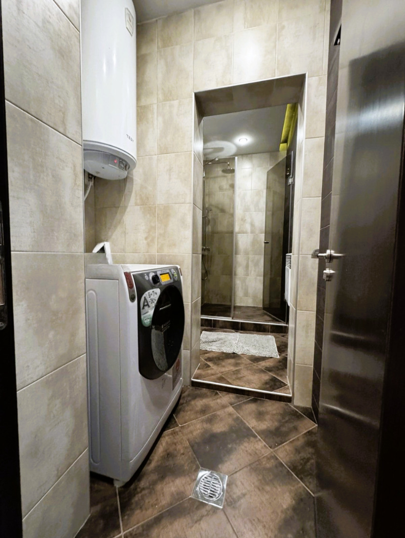Кухненската част е напълно оборудвана с всички необходими електроуреди: вградена фурна със стъклокерамични котлони; аспиратор; съдомиялна; хладилник; микровълнова; кафемашина.