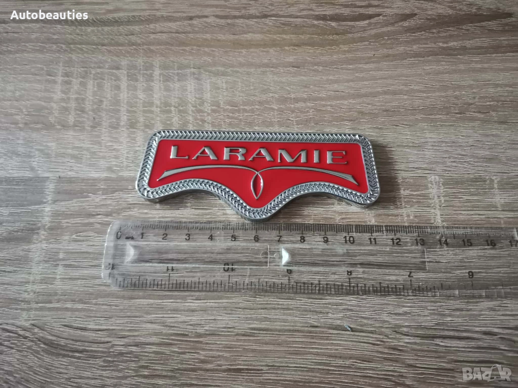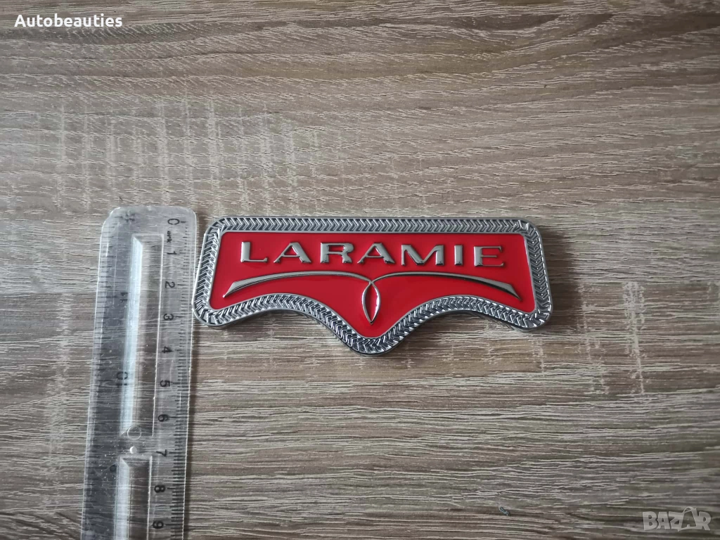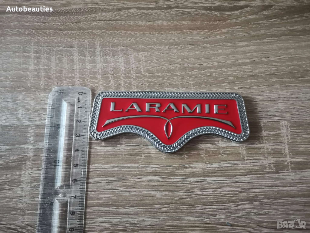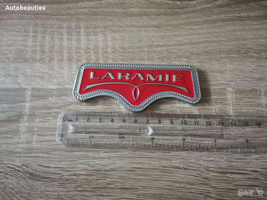 нова метална емблема Laramie за Dodge RAM в червено. Размерите са дадени на снимките.
