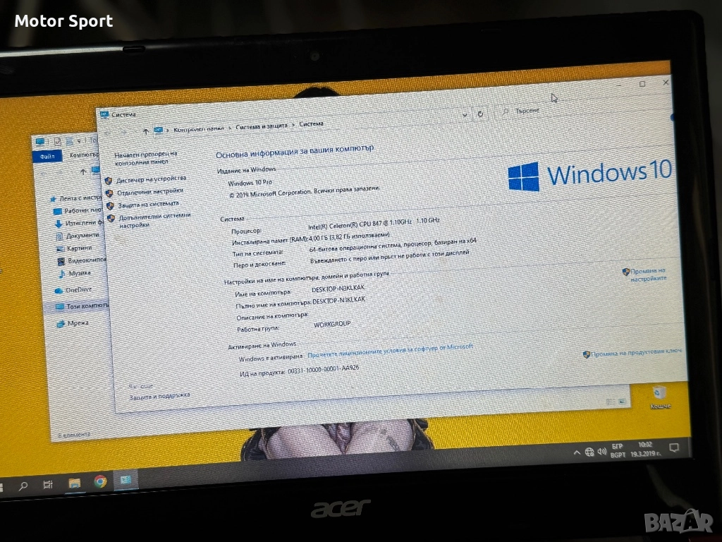 Продавам Лаптоп Acer Aaspire със нормални следи от употреба.Без счупено и спукано работи нормално има инсталиран Windows 10Pro на Български [Активиран] .Подходящ за диагностинки всекидневна ражота и употреба много удобен и практичен