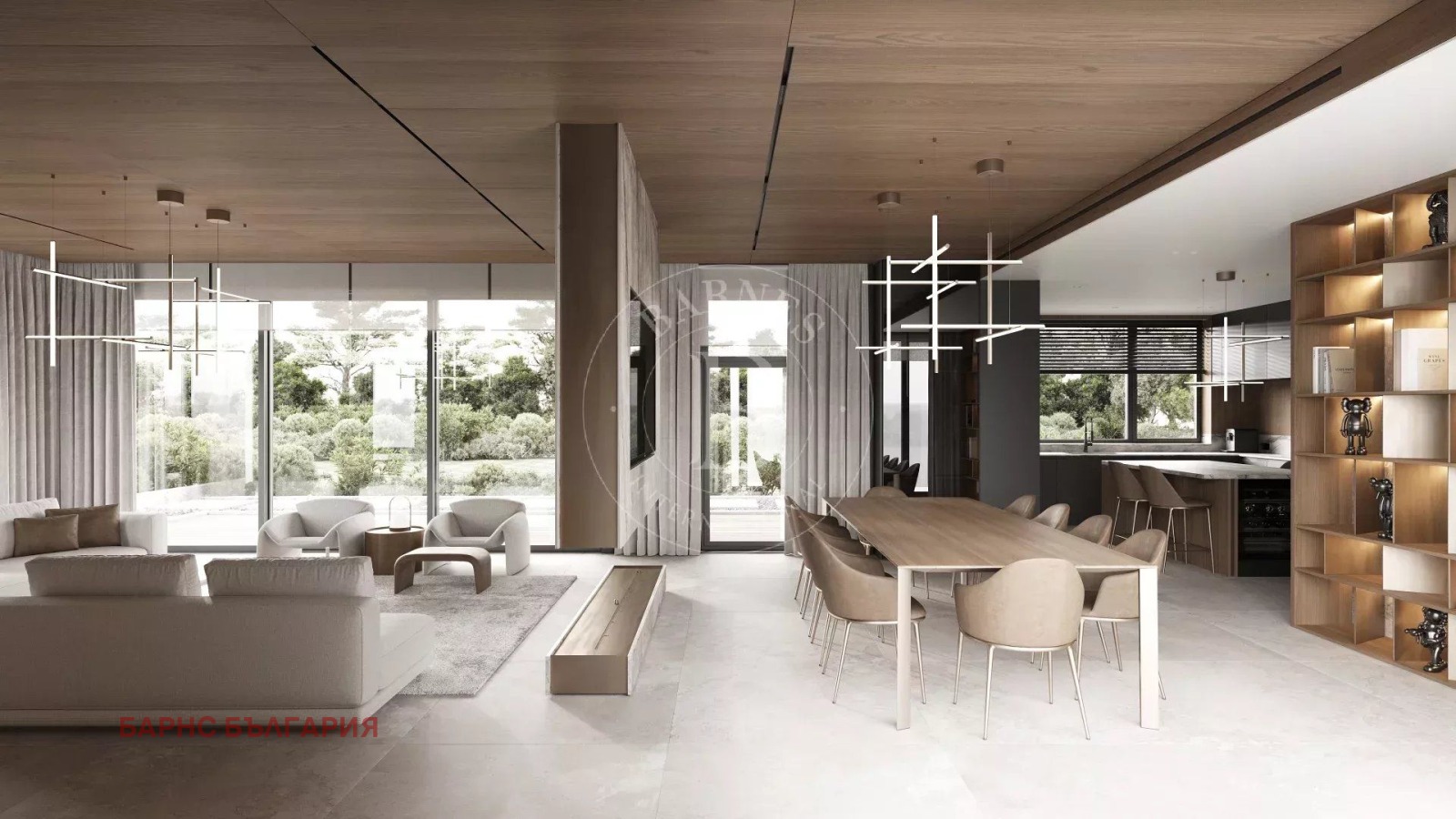 Представяме изключителен имот – нова къща, разположена сред прекрасна паркова среда от 5 декара в с. Лозен, до София. Имотът е част от елегантен затворен комплекс, състоящ се от три самостоятелни къщи, всяка със собствен двор и достъп до общите зелени площи. Комплексът предлага уникална атмосфера на спокойствие и природа – с езеро, малка река, водопад, джакузи и богато озеленяване, което осигурява усещане за релакс и комфорт през цялата година. Разположението до гората гарантира чист въздух и красива гледка, а в непосредствена близост се намират всички удобства, необходими за ежедневието – магазини, транспорт, училище и др.