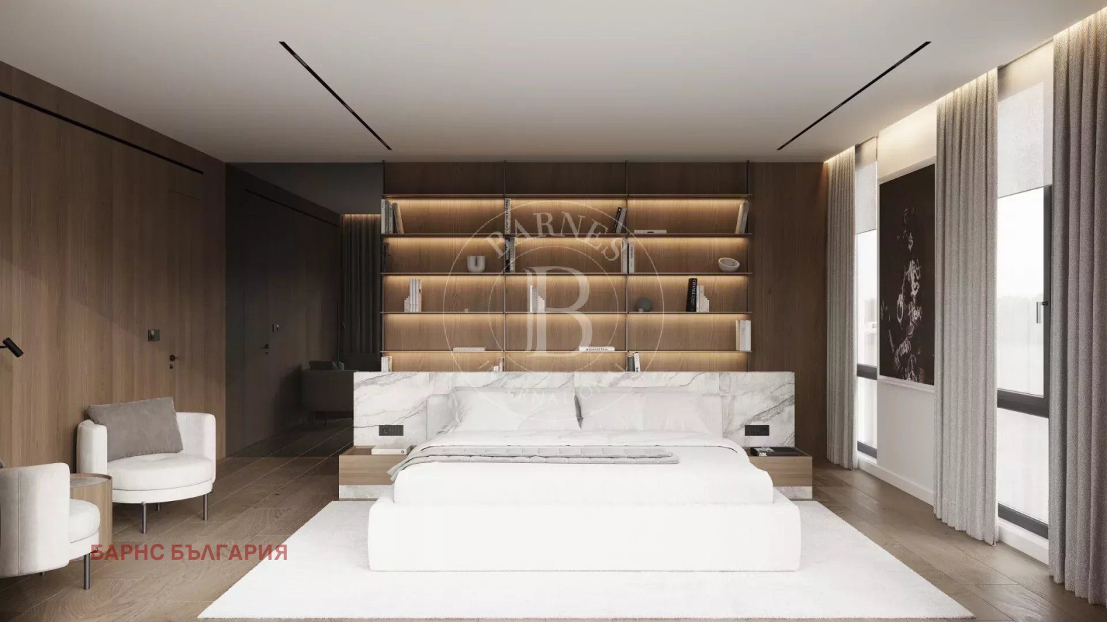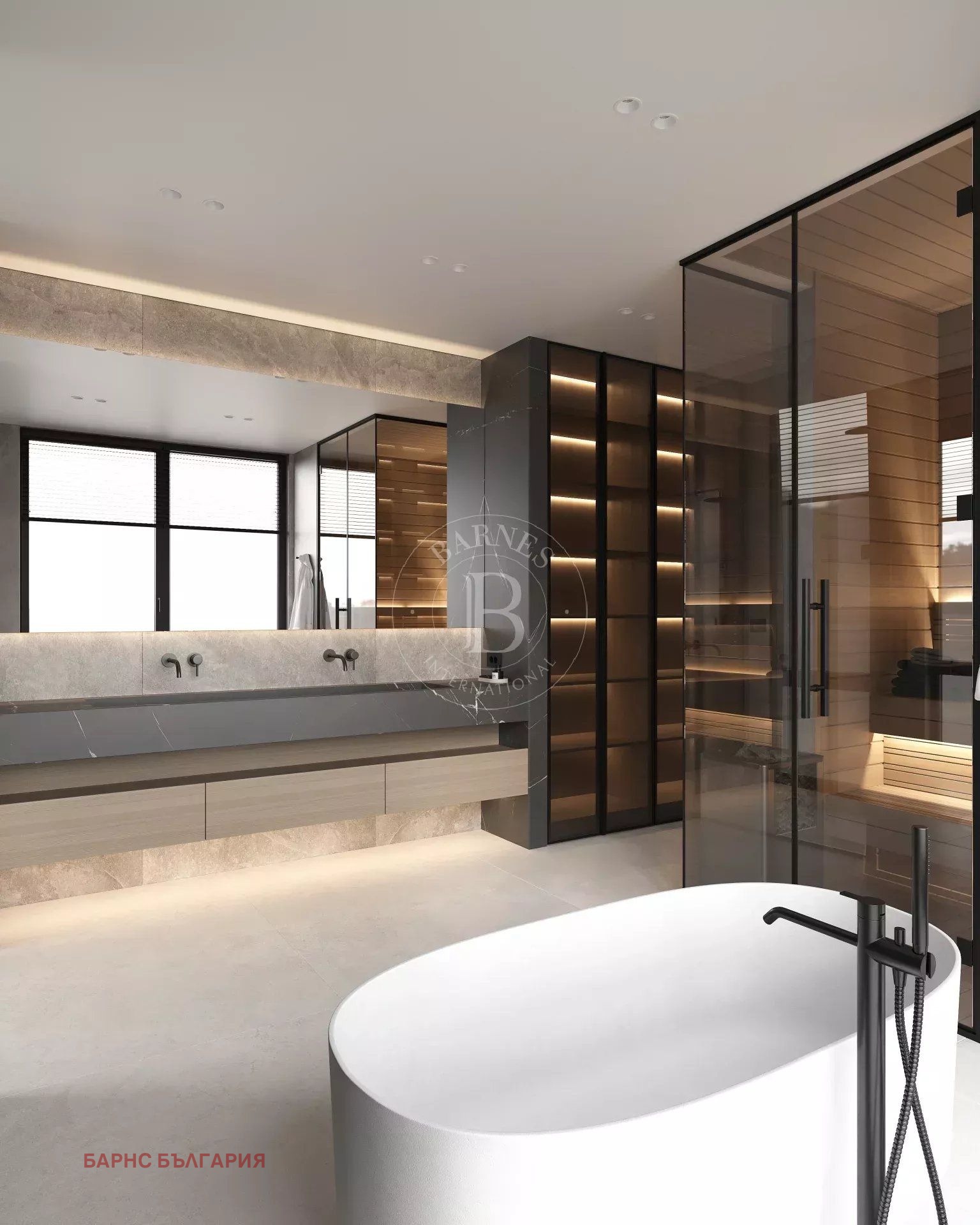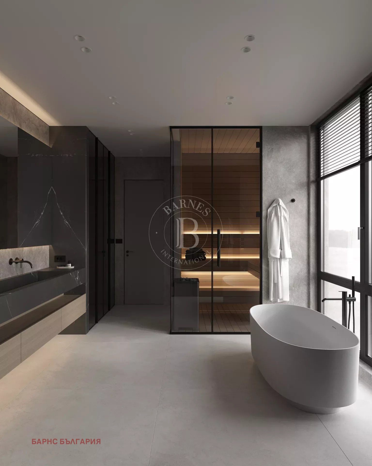 • Ниво 2: мастър спалня (28.47 м2) с голям дрешник (18.48 м2) и баня с тоалетна (15.91 м2) и сауна, втора спалня с дрешник и баня с тоалетна, трета спалня с баня с тоалетна и мокро помещение.