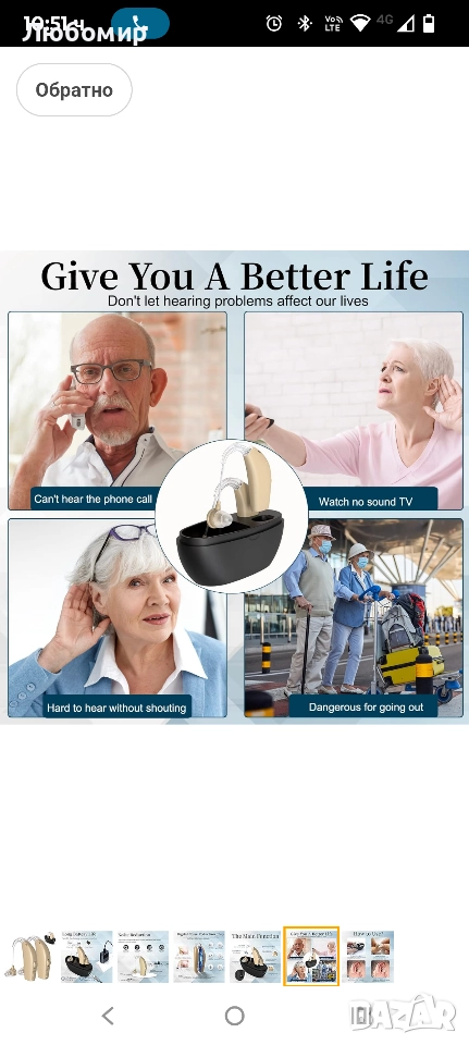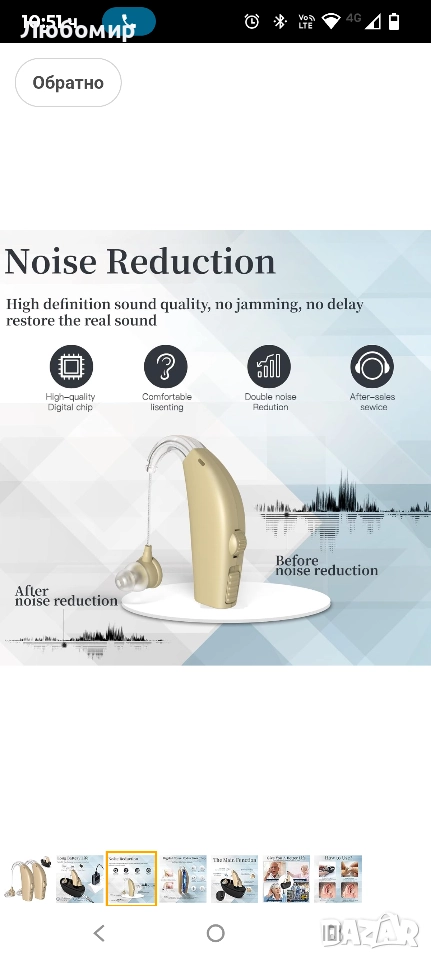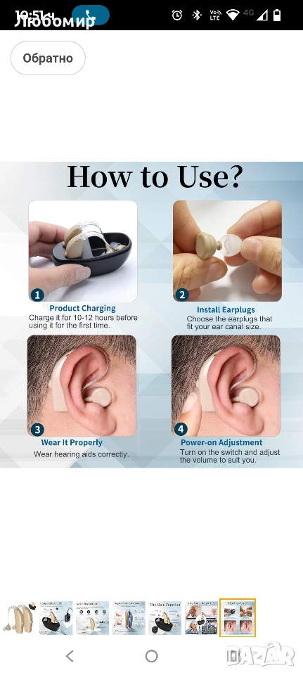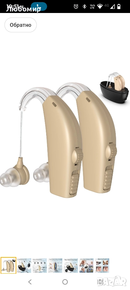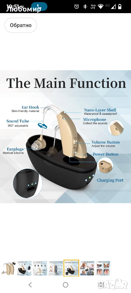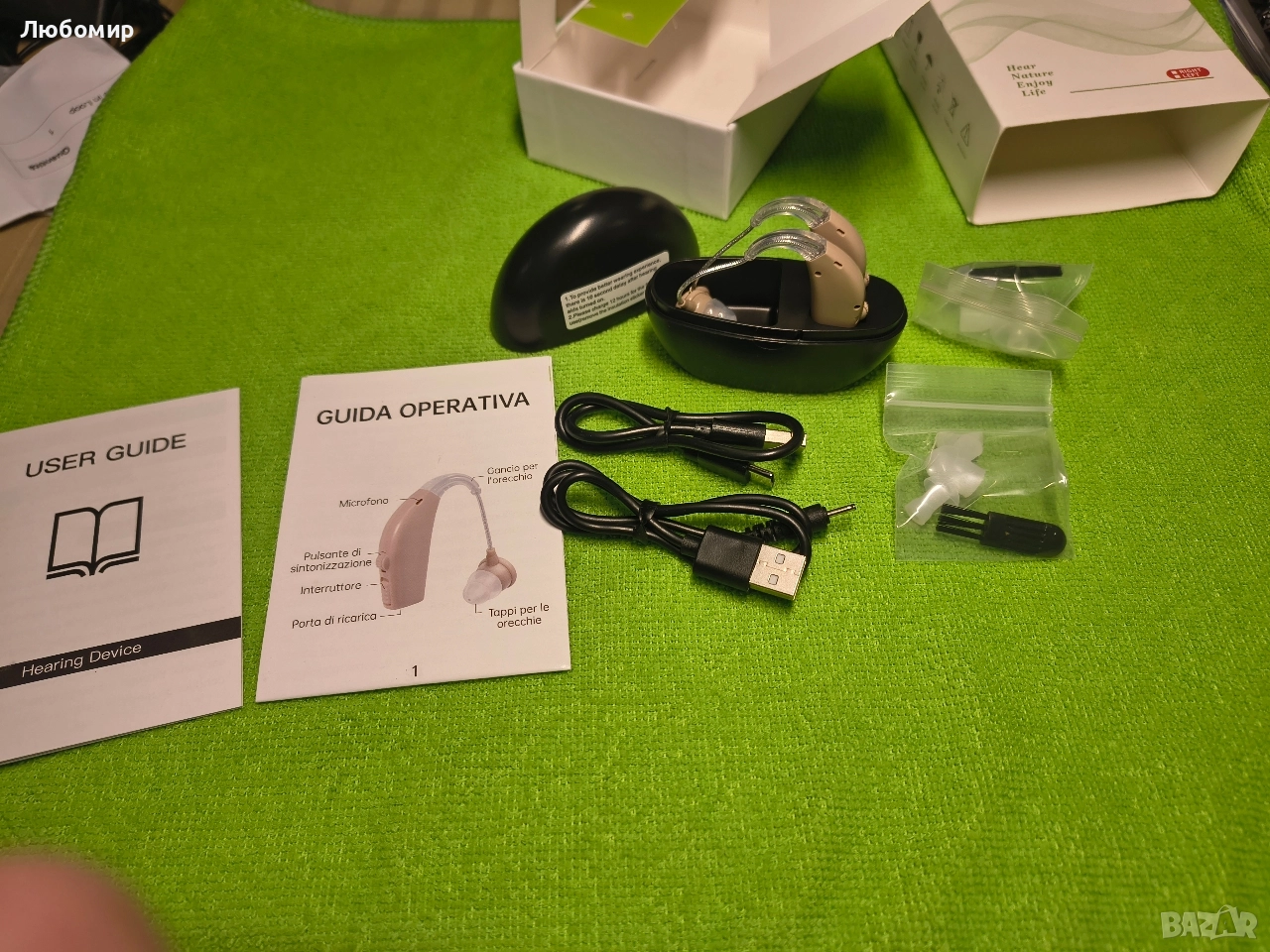 слухов апарат. Лекият дизайн и ергономичността ви правят по-удобни и стабилни за носене. Усеща се удобно в ушния канал и не натоварва ушите при продължителна употреба. Преносимата кутия за зареждане е лека и удобна и може да се зарежда по всяко време в джоба. Подходящ за всички видове хора със слаб слух и независимо от лявото и дясното ухо.
