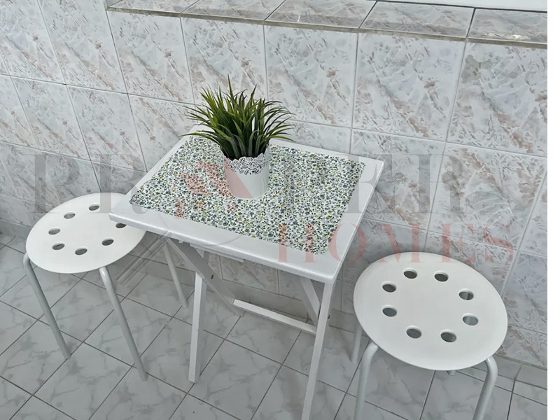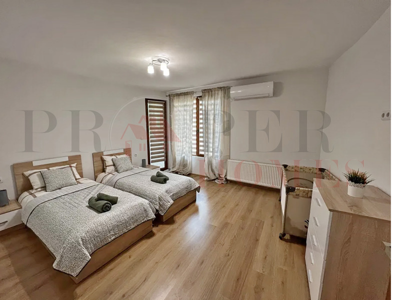 Разполага с ПВЦ дограма, подове от теракот и ламинат. Отдава се обзаведен и оборудван с всички необходими мебели и ел.уреди: телевизор, пералня, сушилня, хладилник, климатик, интернет, миялна, готварска печка и климатици.